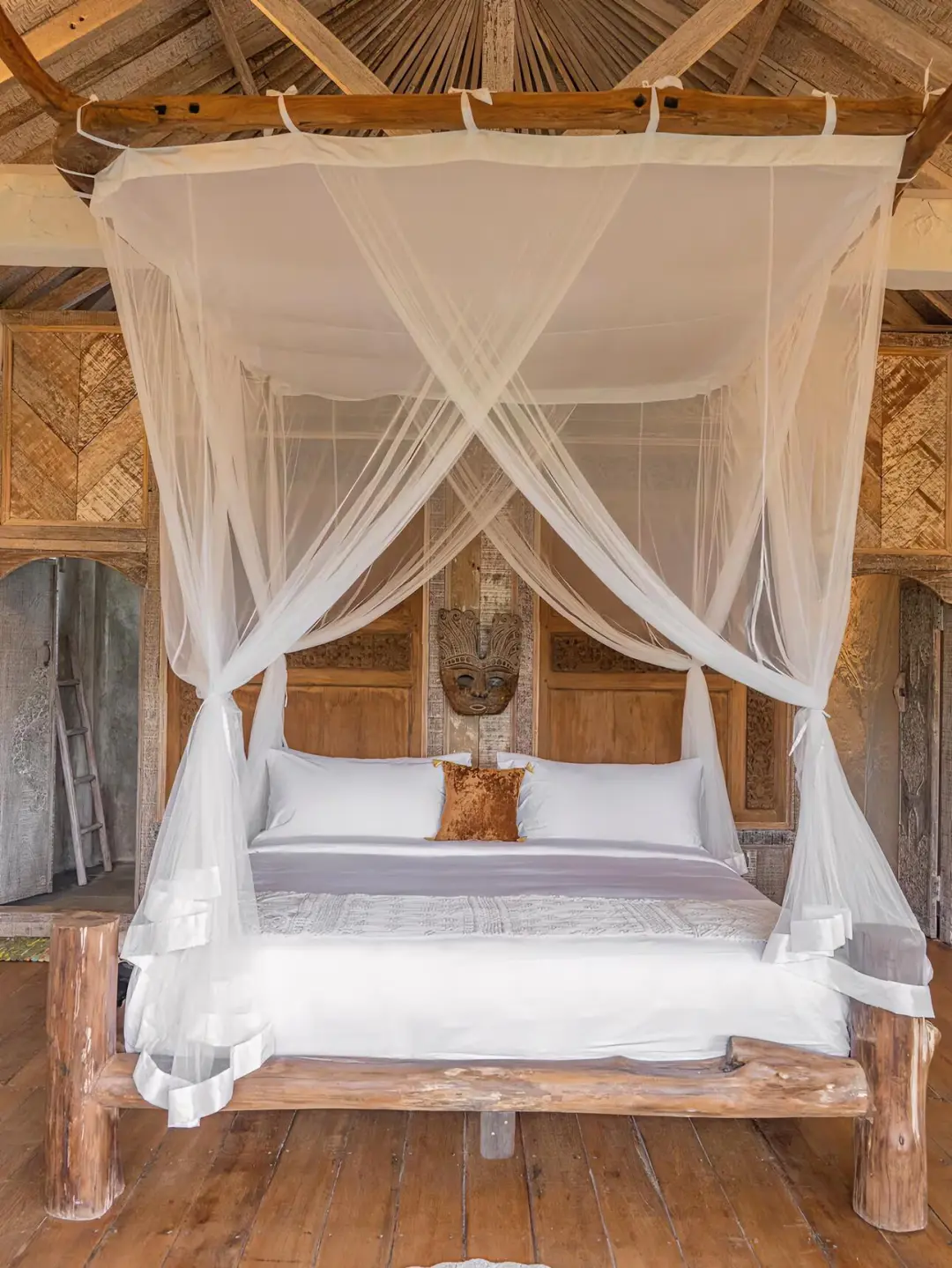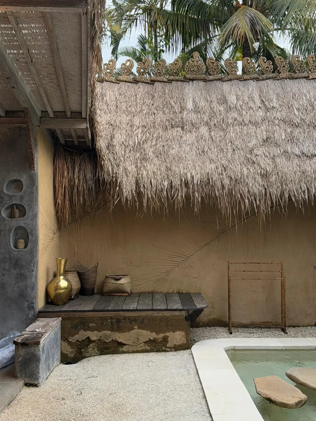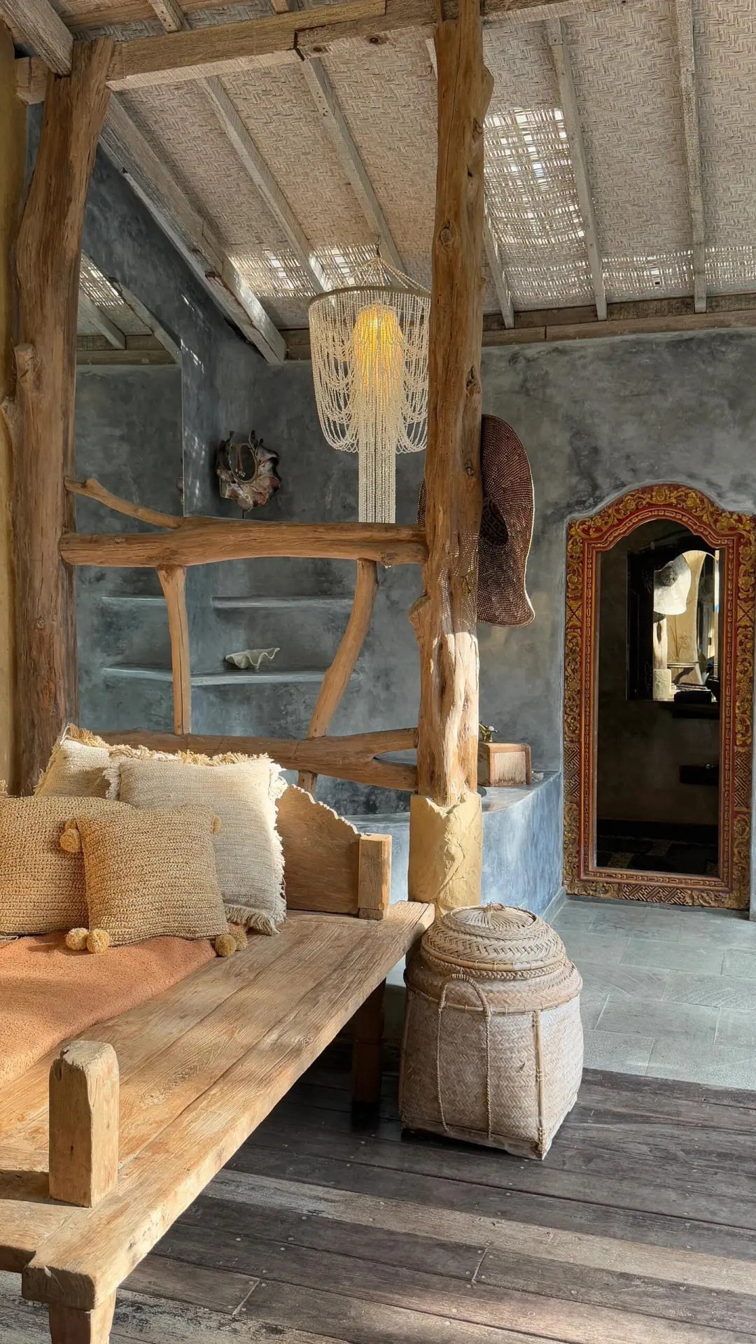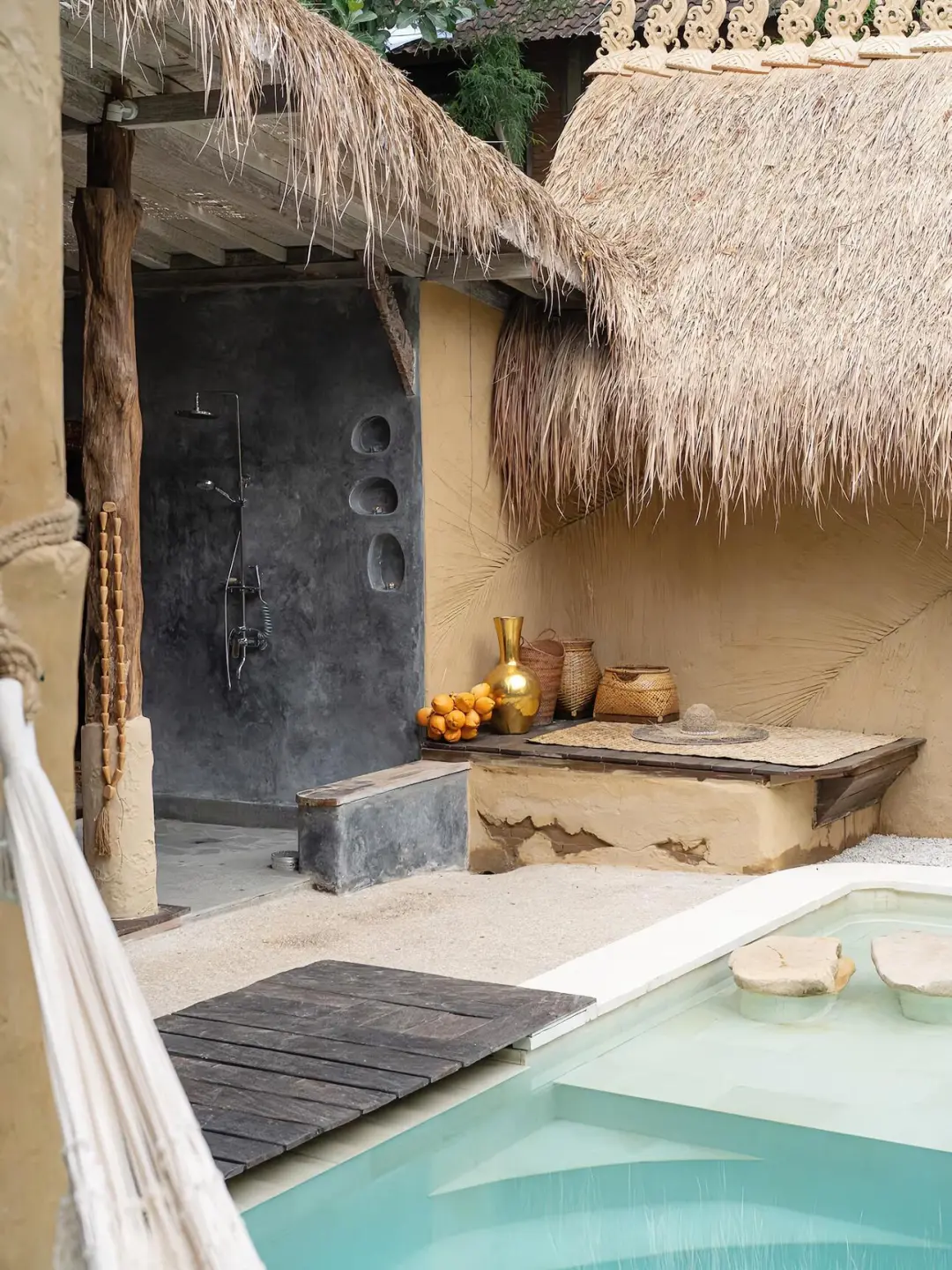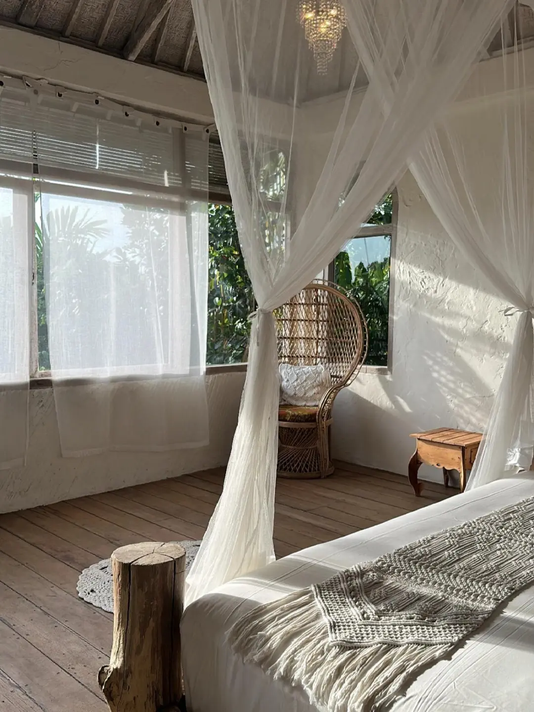 别墅设计的超级美,拥有印度尼西亚群岛的古董装饰,院子里有私人泳池,每天一醒来就能跳进泳池的感觉简直太爽了~整个别墅面积也很大,床两边有帷幔,浪漫十足