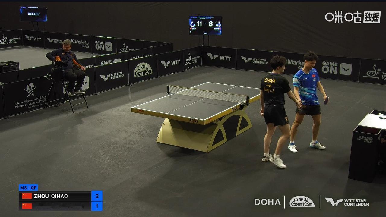 七号满电的时候真的很顶! 周启豪今天两场比赛都是3-1胜出了,上午刚3-1篠塚大登,晋级男单八强,这场比赛还是梁甜甜做的场外,梁教授执教开门红! 刚才的男单1/4决赛,七号和黄油的魏桥队内战,七号又是满电模式,3-1战胜了黄油,晋级四强! 不得不说,满电的七号谁都能打得过,这一次也是很要的,半决赛加油吧! 另一场男单内战,薛飞 vs 温瑞博,小温已经2-0领先了,大概率是小温能拿下吧。