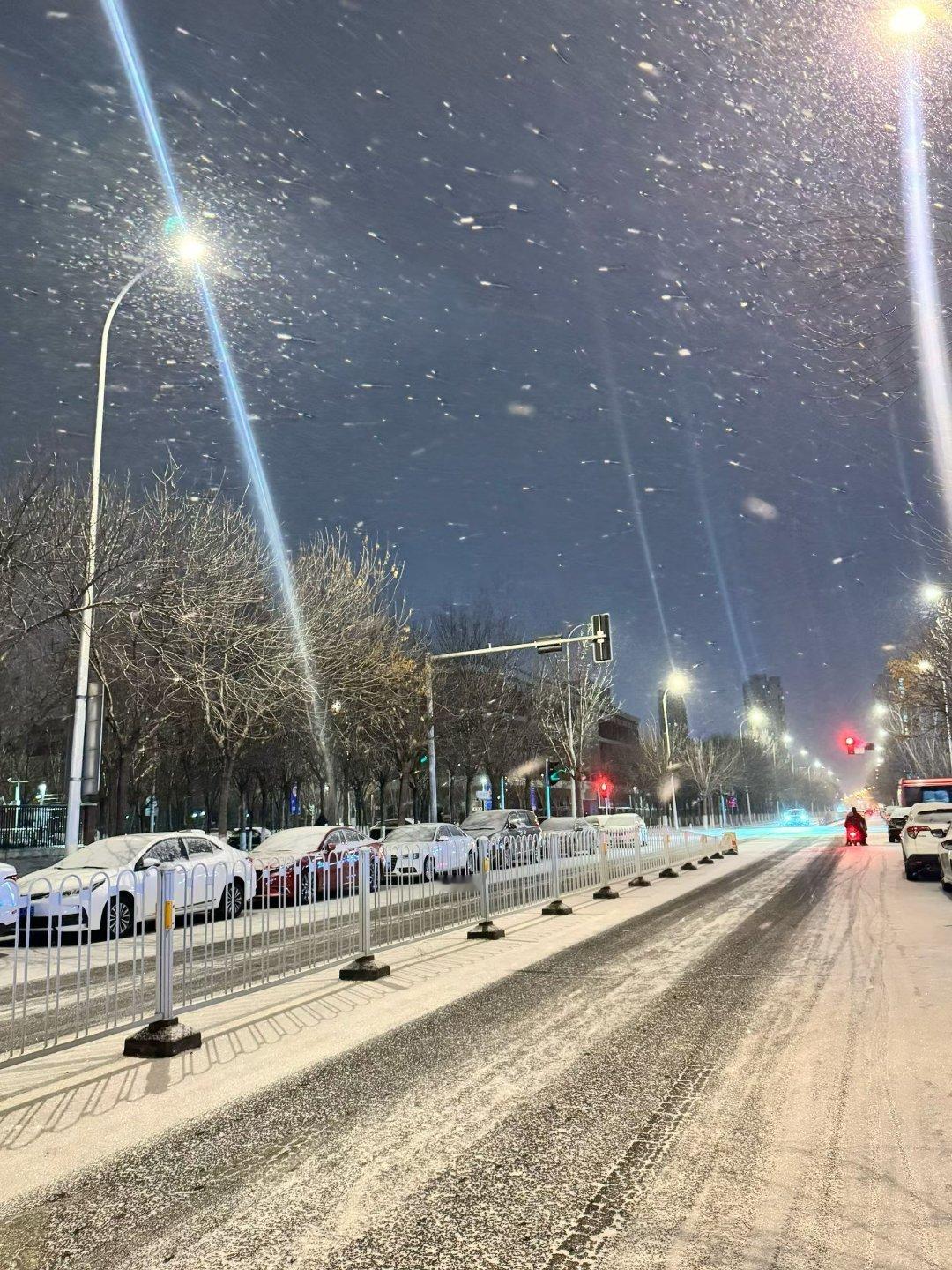 晚上还是没忍住,跑到外面去看了雪,配合着路灯还挺漂亮