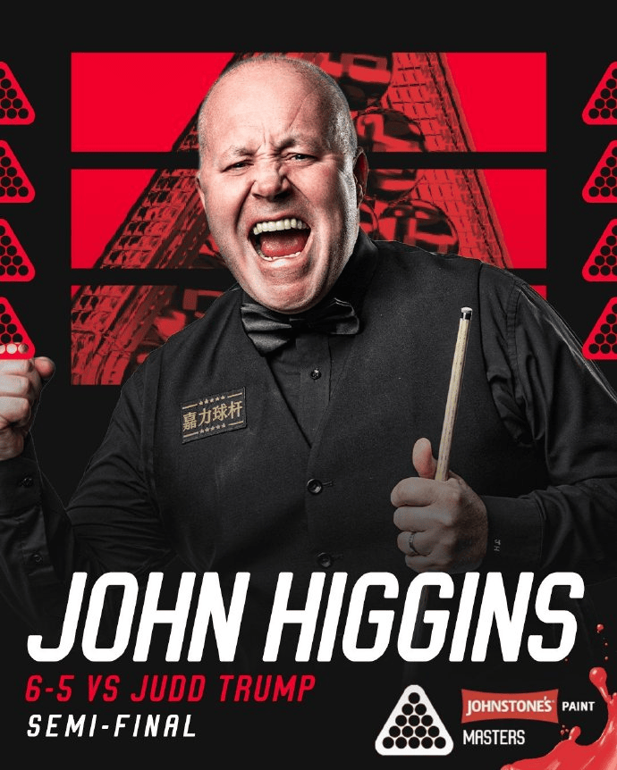 虎扑01月18日讯斯诺克大师赛半决赛,约翰-希金斯3-5落后逆转特鲁姆普,成功晋级决赛。
