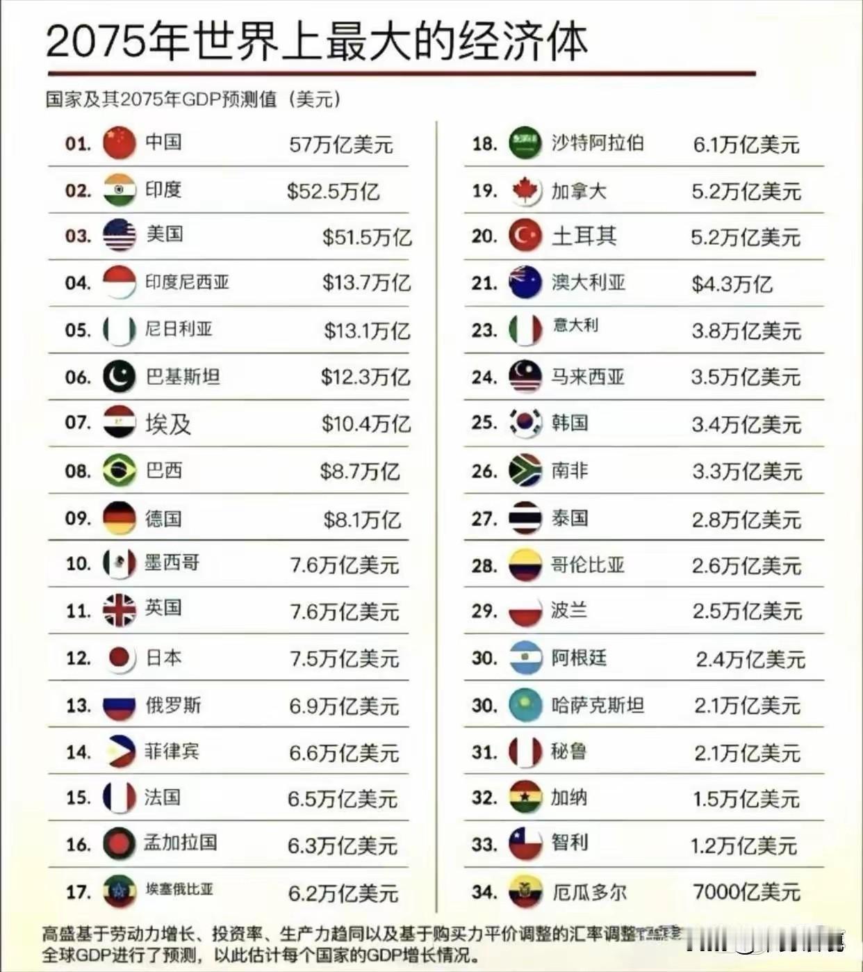高盛也是目光短浅,50年后早就没有美国了 高盛2025年的时候做了一个50年后的世界主要经济体GDP预测,从高盛的预测来看,以美国为首的现今世界主要经济体基本跌出了前十。 而以中国为首的东方经济体快速增长,不过,高盛也是目光短浅,以美国现今的状态能熬50年的可能性不大。50年内美国极有可能已经解体为由共和党和民主党分立的两个国家了。
