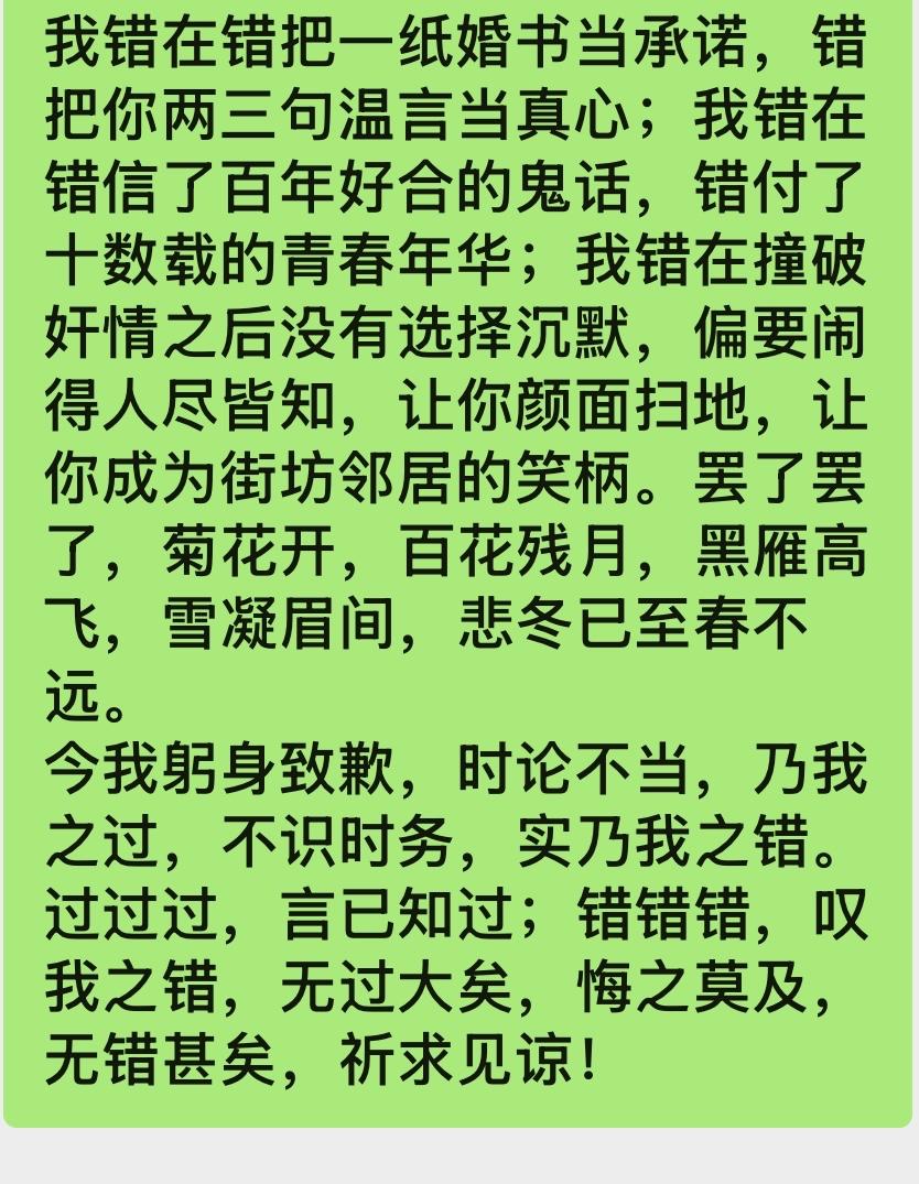 牛娜文言文的道歉,文笔流畅,颇有深意,情真意切,字字珠玑,句句“见血"令人动容。 赞法官高瞻远瞩,聪明智慧,判“公开道歉”,让高飞此人天下皆知! 喜见广大吃瓜群众热情不减,持续关注,将道歉视频顶上热搜,让娜女火遍大江南北。 (后二图为网友转文字截屏)