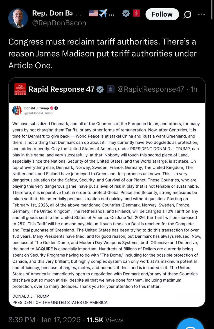 特朗普因格陵兰岛向欧洲8国加税真是妙事!¹ 特朗普2.0正在加大力度干盟友!当美国的盟友必需忍受憋屈。² 图2:反对特朗普2.0的欧美人士,正在寄希望于最高法院、国会收回特朗普2.0援引IEEPA法案的关税权。他们希望美国国家机器还能正常运转。热点科普