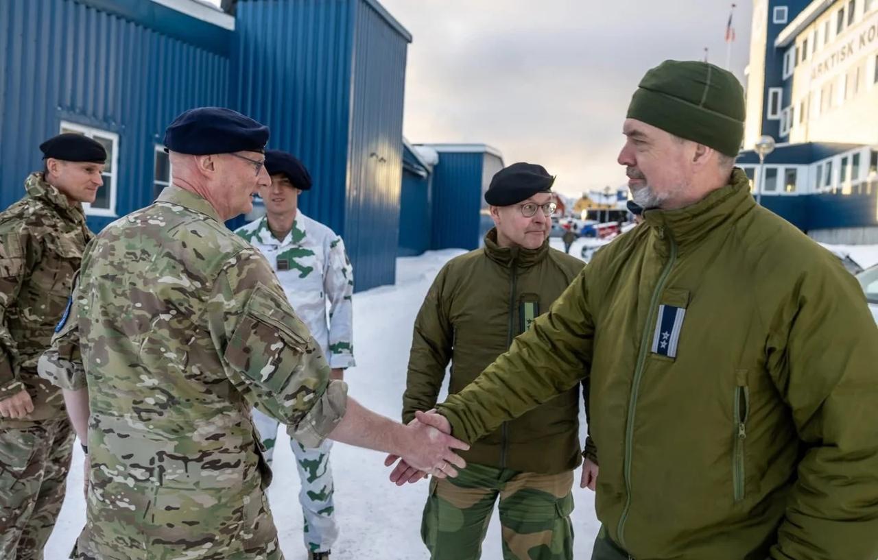 来自法国、挪威、英国和瑞典的士兵目前正在格陵兰岛参加军事演习。他们会见了联合北极司令部司令,并听取了有关格陵兰岛和北极司令部的简报。 从图片看,墙壁上挂着一只巨大的北极熊皮。他们是讨论对抗美国,还在其他什么呢?