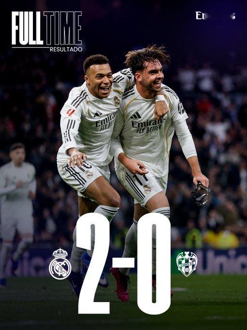 皇马2比0莱万特皇马主场2-0莱万特,阿韦洛亚收获执教首胜,先赛1场距巴萨仅1分,暂列西甲第2;莱万特3轮不胜,积14分深陷降级区。关键要点• ⚽ 进程:上半场0-0,皇马仅1射正,姆巴佩凌空抽射造险;58分钟居莱尔直塞,姆巴佩禁区被铲倒造点并亲罚命中;65分钟居莱尔角球传中,阿森西奥头球破门;76分钟马斯坦托诺远射中楣。• 📊 核心数据(皇马vs莱万特):控球70%-30%;射门26-10;射正11-0;预期进球2.61-0.80;绝佳机会3-0;角球8-0;犯规12-14。• 🧤 关键球员:姆巴佩造点+罚进,居莱尔1直塞+1角球双助;阿森西奥头球锁定胜局;库尔图瓦零封;马斯坦托诺替补登场造威胁。• 🔄 战术与调整:皇马433控球推进,上半场节奏偏慢;60分钟换居莱尔、马斯坦托诺,激活肋部与定位球,下半场射门达20次;莱万特541低位防守,全场0射正,反击难成威胁。• 📈 形势影响:皇马终结国王杯出局后的低迷,新帅首战提振士气,争冠压力缓解;莱万特近13轮仅1胜,保级形势愈发严峻。