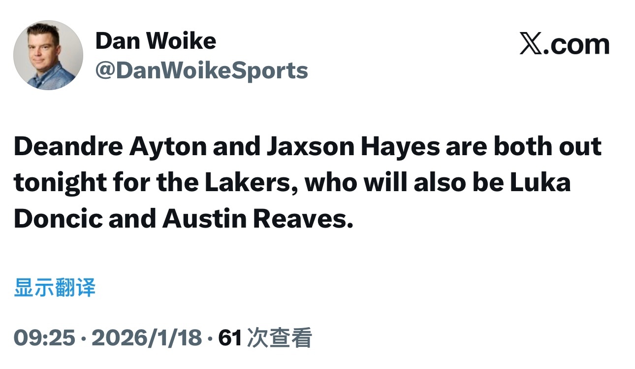屋漏偏逢连夜雨艾顿今天也打不了,湖人缺少后场双枪东契奇、里夫斯,以及两位中锋艾顿和海斯……那么可乐杯……