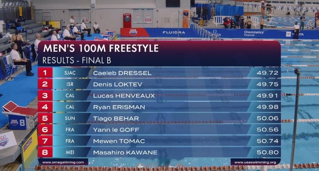 美国游泳系列赛奥斯丁站 男100自B组决赛奇葩 49.72