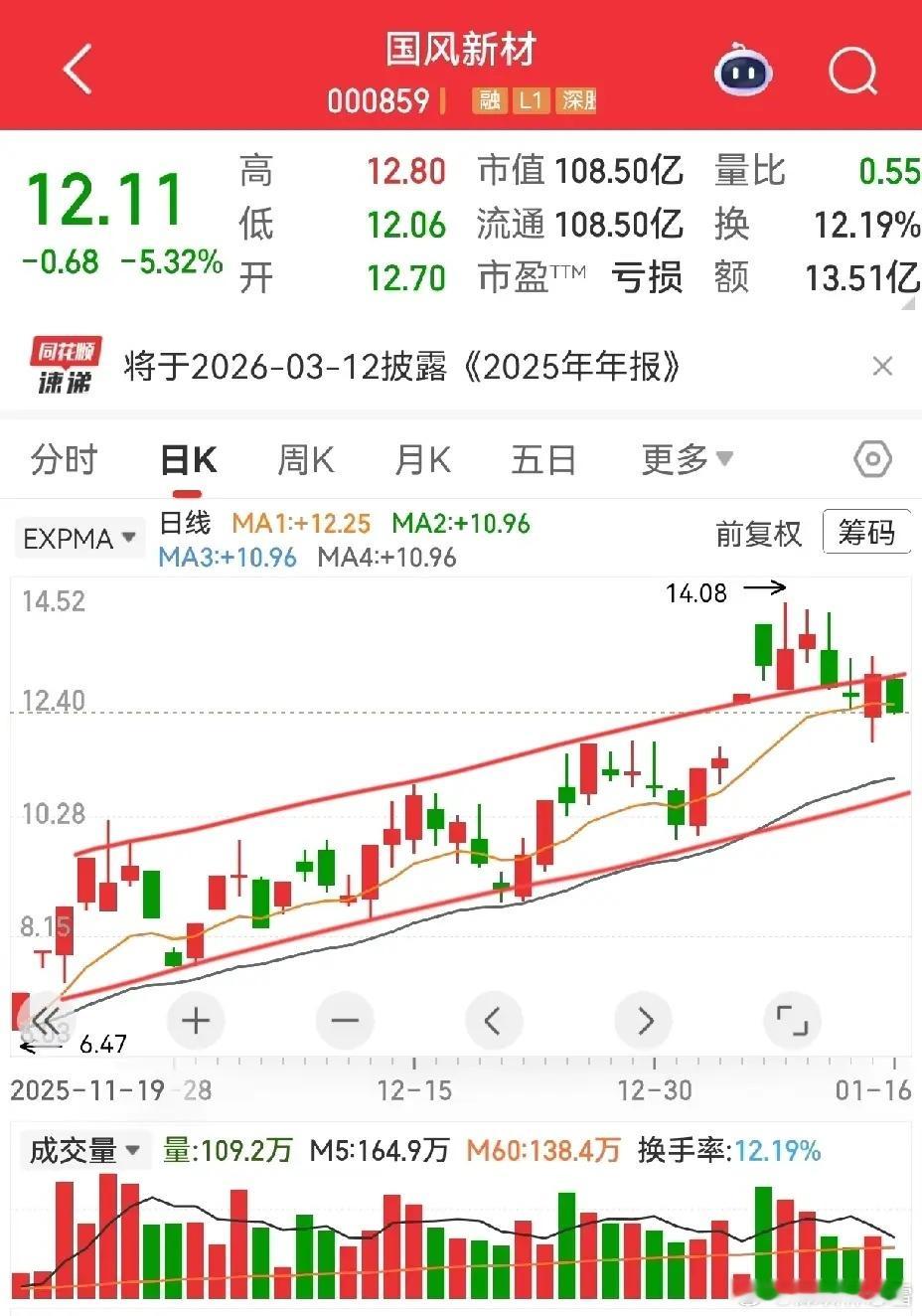 粉丝点名要唠的国风新材 吉视传媒,不构成任何参考! 先说说国风新材,此前四连板的热度还没散,之后就开启了慢悠悠的震荡上行路。不像商业航天那样一骑绝尘猛冲,它更像被牵引线稳稳拉住的风筝,沿着生命线螺旋往上飞,早就走出了清晰的上升轨道。不过近几个交易日试着突破轨道后没能加速,又乖乖回到了既定节奏里,后续是继续爬坡还是调整蓄力,咱们慢慢看。再看吉视传媒,之前有过亮眼表现,后来经历了不短时间的回调,近期总算又活跃起来。涨停板之后本想在高位“空中加油”再冲一波,无奈大盘不给力,加油失败不说,第五天还来了波大跌。有意思的是,这次大跌是缩量状态,典型的长阴短量,没有出现恐慌性抛售的迹象。至于接下来是延续调整磨底,还是主力反手拉涨快速回升,只能说全看资金的心情啦。股市里没有百分百的答案,以上都是个人浅见。