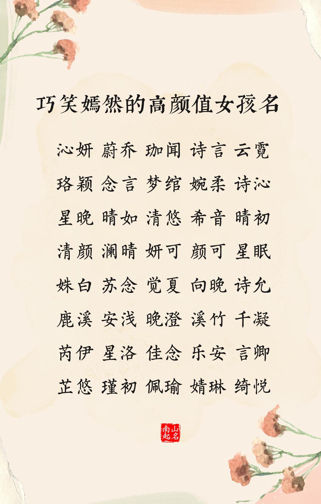 巧笑嫣然的高颜值女孩名,自带流光,温婉动人起名字
