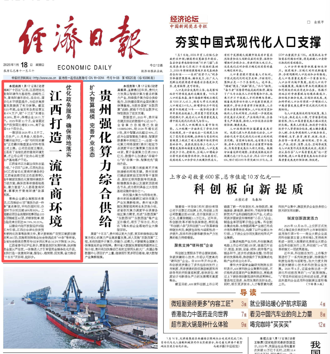 “十四五”以来,江西把优化营商环境作为基础性、战略性工作,营商环境市场化、法治化、国际化水平明显提升,为经济高质量发展提供了有力保障。截至2025年底,全省实有各类经营主体474万户,较“十三五”末增长48.58%,其中,净增企业59.71万户。2025年前11个月,全省固定资产投资同比增长2.0%,高于全国4.6个百分点。