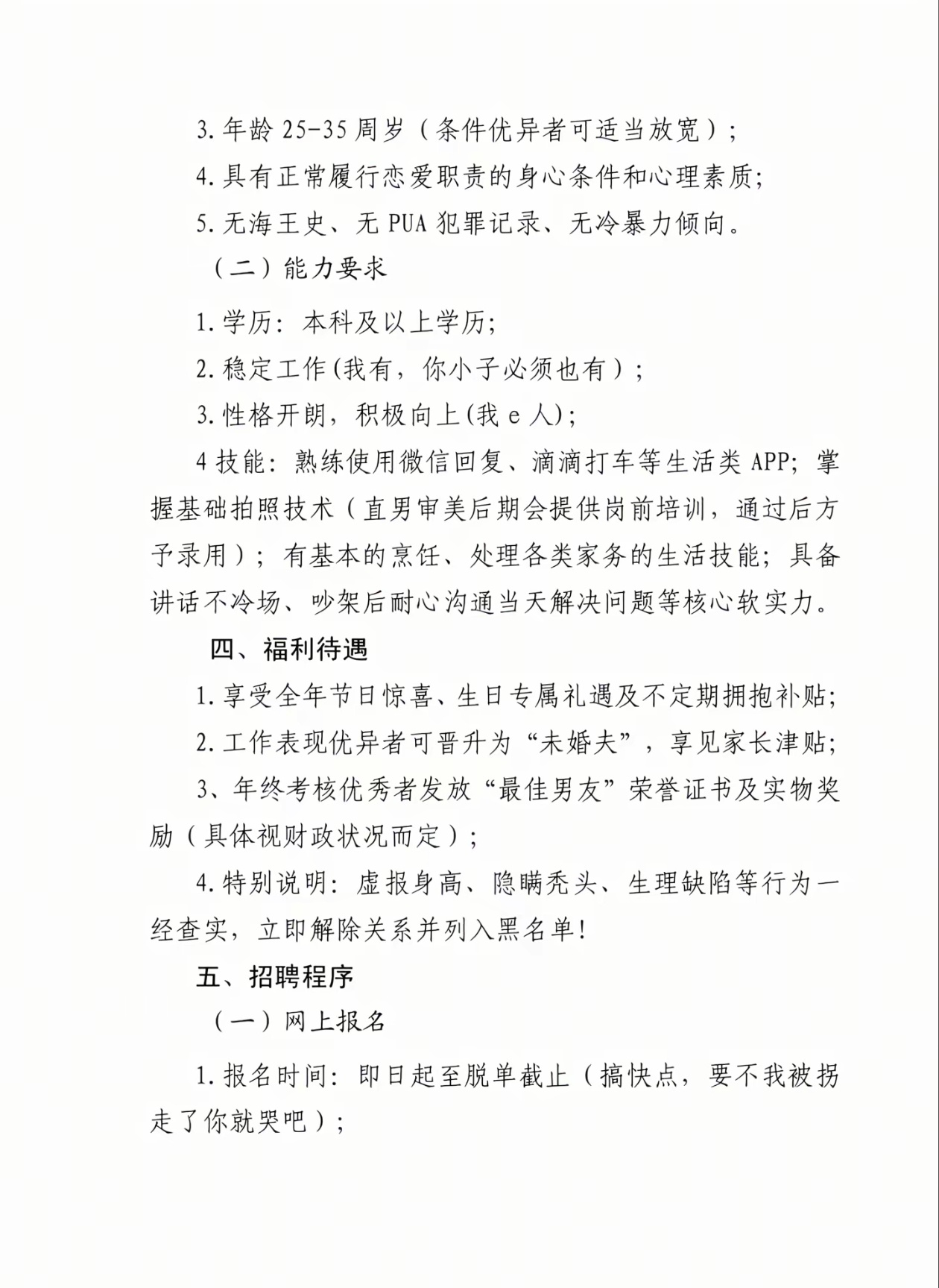 公开招聘男朋友的公告,太有才了!拟同意。情况属实,按照要求办理手续!快过年了,该