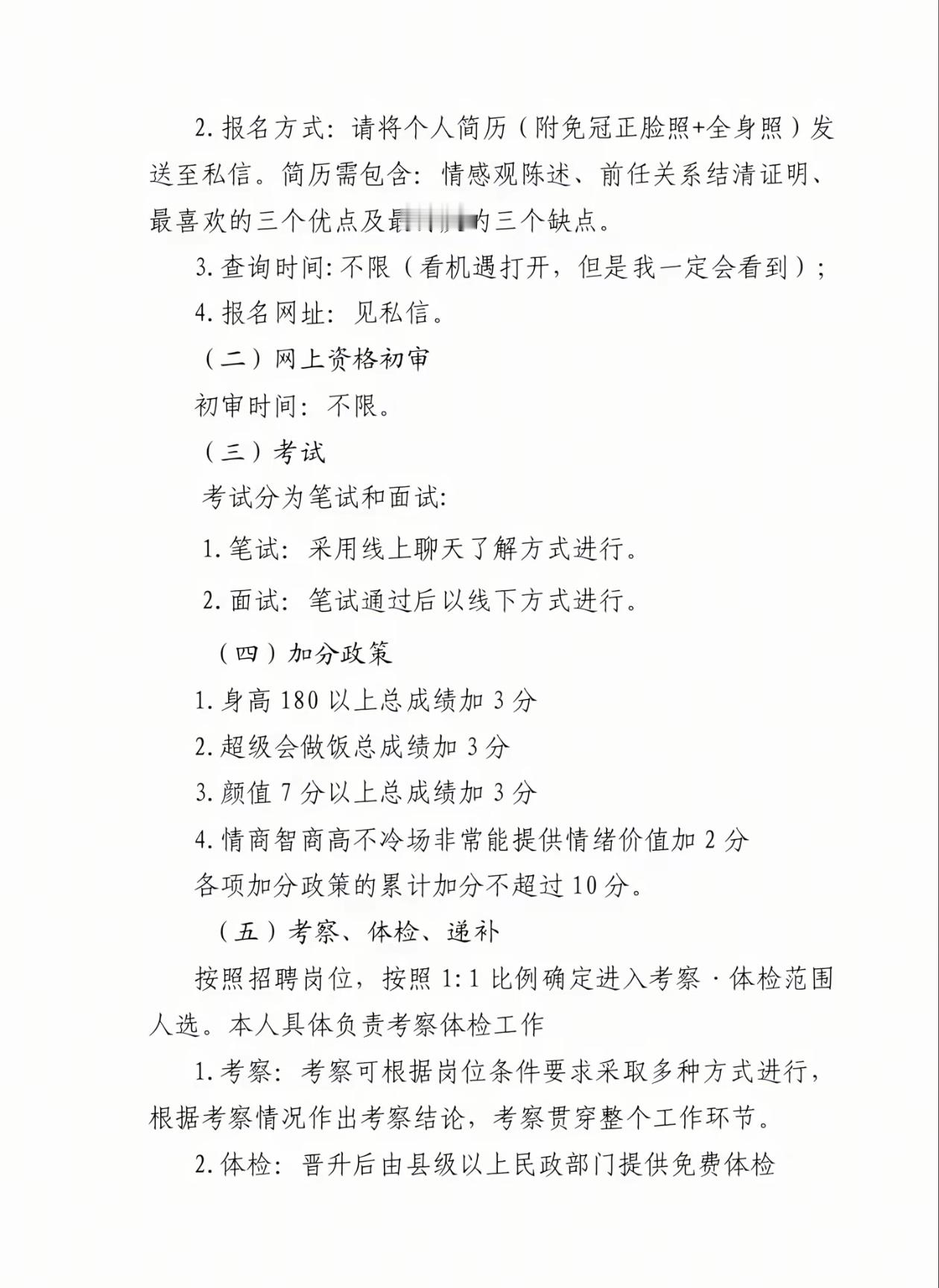 公开招聘男朋友的公告,太有才了!拟同意。情况属实,按照要求办理手续!快过年了,该办个对象年货了!