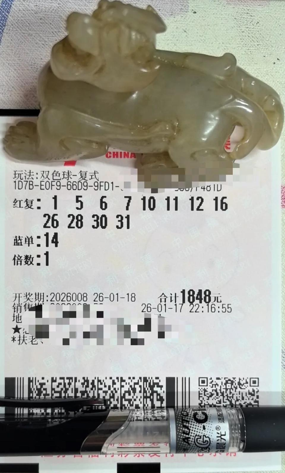 双色球第26008期开奖在即,备受瞩目的“99倍哥”再度出手。昨晚大乐透,他凭借99倍投注成功回本,今晚又将如何布局?一起来看本期实票亮点: 一、红球风格延续以往策略,连码与同尾码仍是关注重点,走势稳中求进。 二、蓝球独一注锁定14,与近期大开大合的蓝球走势不谋而合,值得期待。 三、大复式12+1中,同尾码01、11、31与06、16、26形成呼应,结构鲜明。 四、复式票中包含两组三连号:05、06、07与10、11、12,此布局是否成局,尚待开奖验证。 彩票新规将于2月1日正式实施,创造亿元巨奖的历史仅剩最后6期机会。今夜,奇迹是否会在截止前夕诞生?我们共同拭目以待。