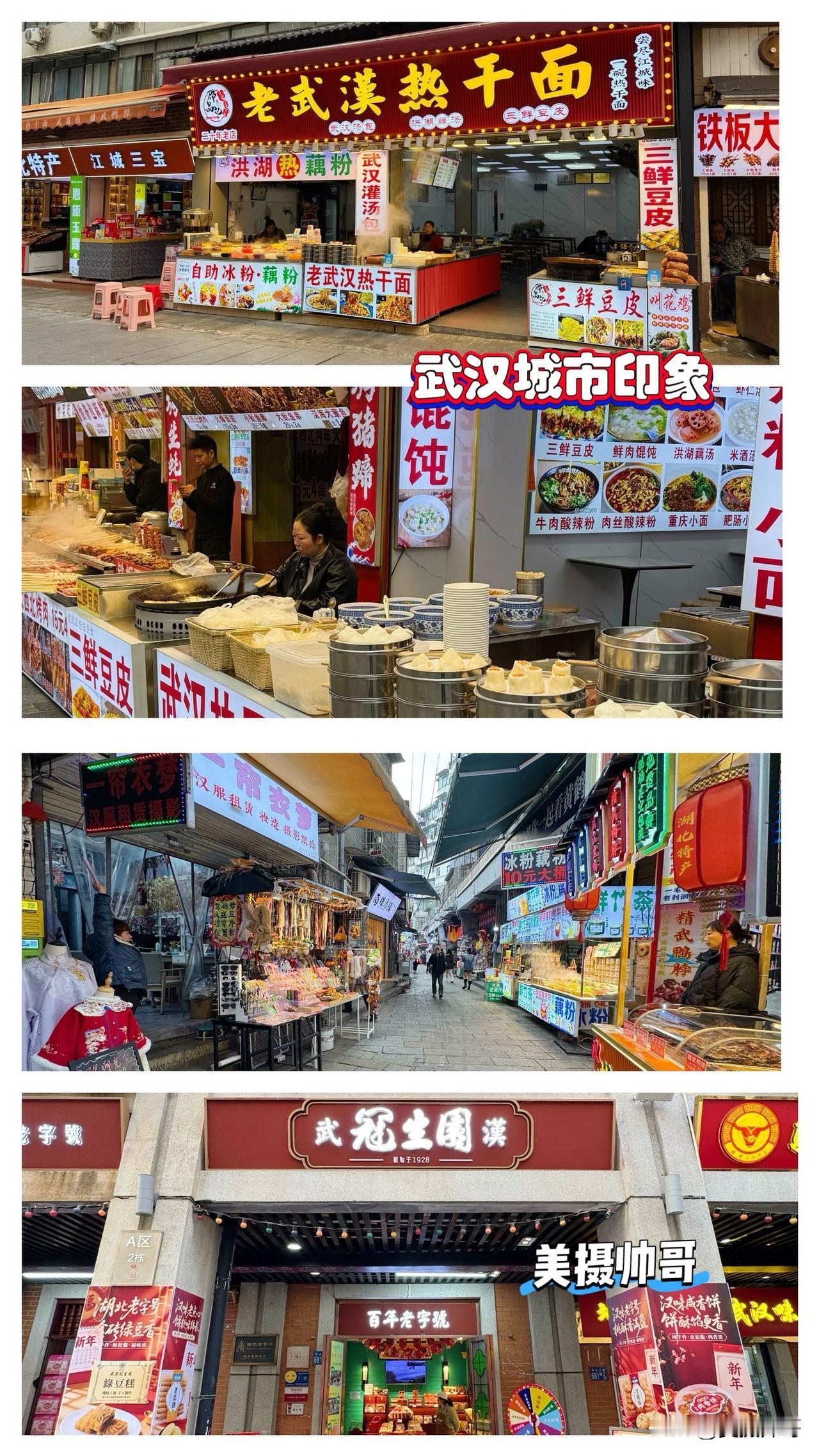 分享我这周有趣的事: 2026年武汉城市印象 武汉作为"九省通衢"的江城,拥有丰富的历史文化和自然风光。同时武汉也是一座历史与现代交融、自然与人文辉映的城市,给人留下了深刻而多元的印象。 其一:城市的总体印象和感受 早在七八十万年前,郧县人、长阳人就在湖北这片土地上繁衍生息。春秋战国时期,楚国在湖北逐渐壮大,创造了辉煌的楚文化。秦汉时期,荆楚地区经济社会进一步发展。魏晋南北朝时,发生了著名的赤壁之战。宋代,在湖北中部设荆湖北路,湖北之名始此。清代康熙三年,湖广分治,北为湖北布政使司,定为湖北省,省会武昌。武汉拥有3500年建城史,是楚文化核心区,古琴台“高山流水遇知音”的故事流传千古,黄鹤楼上留下诸多千古绝唱,还有众多红色遗迹,是名副其实的英雄之城。 武汉是全球唯一人口过千万的国际湿地城市,长江与汉江在此交汇,166个湖泊星罗棋布。东湖如翡翠镶嵌城中,33平方公里水域与绿意交织,东湖绿道更是将生态与生活完美融合。武汉素有“九省通衢”之称,万吨巨轮可直航,高铁4-5小时可直达大半个中国,飞机2小时可飞往全国主要城市,是连贯长江经济带、连接“一带一路”、连通世界的重要枢纽城市。武汉有92所高校,140万大学生,铸就了强大的科创筋骨。光谷擎起“中国芯”,车谷轰鸣新能源引擎,低空经济、人工智能等领域发展迅速,充满青春活力。 鄂菜以鱼米之乡的物产为基础,擅长蒸、煨、炸,注重原汁原味,清蒸武昌鱼、沔阳三蒸等都是鄂菜的代表菜品。此外,武汉热干面、三鲜豆皮等特色小吃也闻名遐迩。作为“早餐之都”,武汉过早种类繁多,热干面、豆皮、面窝等令人垂涎。夜幕降临后,万松园等地的夜市热闹非凡,小龙虾、香辣蟹等美食让人欲罢不能,展现出浓郁的烟火气。 其二、武汉城区必去的老街老巷 武汉的老街老巷承载着深厚的历史文化底蕴,既有民国时期的租界风情,也有传统的市井生活气息。从历史文化价值、建筑特色、商业业态和游客体验四个维度,除了前面介绍的昙华林以外,我认为武汉最值得逛的还有以下4条老街老巷。 1、汉口历史风貌区 江汉路步行街:全长1600米,是武汉著名的百年商业老街。街道两侧中西建筑林立,有欧陆风格、罗马风格等多种艺术风格,形成“万国建筑博览”景观。沿线分布璇宫饭店(文艺复兴风格)、四明银行旧址(古典主义风格)等36栋历史建筑,被称为世界建筑的街头博物馆。其前身为“歆生路”,2000年经过改造后成为全国最长的商业步行街,如今汇集众多国际品牌和本土商家,日均客流量超过30万人次。2025年江汉路获评第四批国家级旅游休闲街区,去年“五一”假期客流量达201.84万,成为武汉“人气担当”。 江汉关大楼(1924年建成):江汉关大楼位于汉口沿江大道与江汉路交汇处,是武汉市的标志性建筑之一,整点响起的铜钟声成为武汉的城市记忆符号。由主楼和楼顶钟楼组成,总高度45.85米。建筑风格为文艺复兴式样,钟楼高约23.1米,每日按时敲钟,按刻奏乐。清咸丰十一年(1861年),英国政府根据《中英天津条约》设立汉口海关——江汉关。1922年11月4日,江汉关大楼举行奠基典礼。 江汉关与上海江海关、广州粤海关、天津津海关并称为近代中国四大海关,是武汉从内陆城市走向对外开放的近代大都会的见证,具有重要的历史价值和建筑艺术价值,2001年被公布为第五批全国重点文物保护单位。 2、咸安坊:作为国内保存最完好的石库门建筑群,咸安坊是受保护里份中唯一享受一级保护的模特园。钢窗蜡板的石库门配着花岗石路与红墙瓦是天然摄影棚,随手一拍都是老汉口风情大片。这里汇集高端零售、餐饮、文创等业态,通过举办手工艺市集、非遗体验、艺术创作雅集等活动,带给人沉浸式体验。 3、吉庆街:承载着老武汉记忆的“烟火之地”,由过去的宵夜大排档扩建成复原20年代老汉口“模范区”的旅游特色街区。这里汇集了老通城、四季美、蔡林记、德华楼、汪玉霞糕点、老万成酸梅汤、谈炎记水饺、冠生园等多家老字号。其中汪玉霞创建于清乾隆年间,是武汉现存历史最悠久的食品老字号之一;老万成酸梅汤纯手工熬制,酸甜解腻,是老武汉人心中酸梅汤的代名词。周末还有民俗传统手工艺非遗集市,引进了天乐社相声茶馆,打造月月有节庆、周周有活动的荆楚演绎特色。 4、户部巷:坐落于武昌区,是一条长150米的百年老巷,被誉为“汉味小吃第一巷”。户部巷汇聚了众多汉味特色小吃,有石婆婆热干面、陈氏红油牛肉面等传统美食,也有老通城豆皮、四季美汤包、蔡林记热干面等江城名小吃,还有三鲜豆皮、面窝、欢喜坨等汉味特色小吃,满足不同游客的口味需求。 武汉 武汉旅游