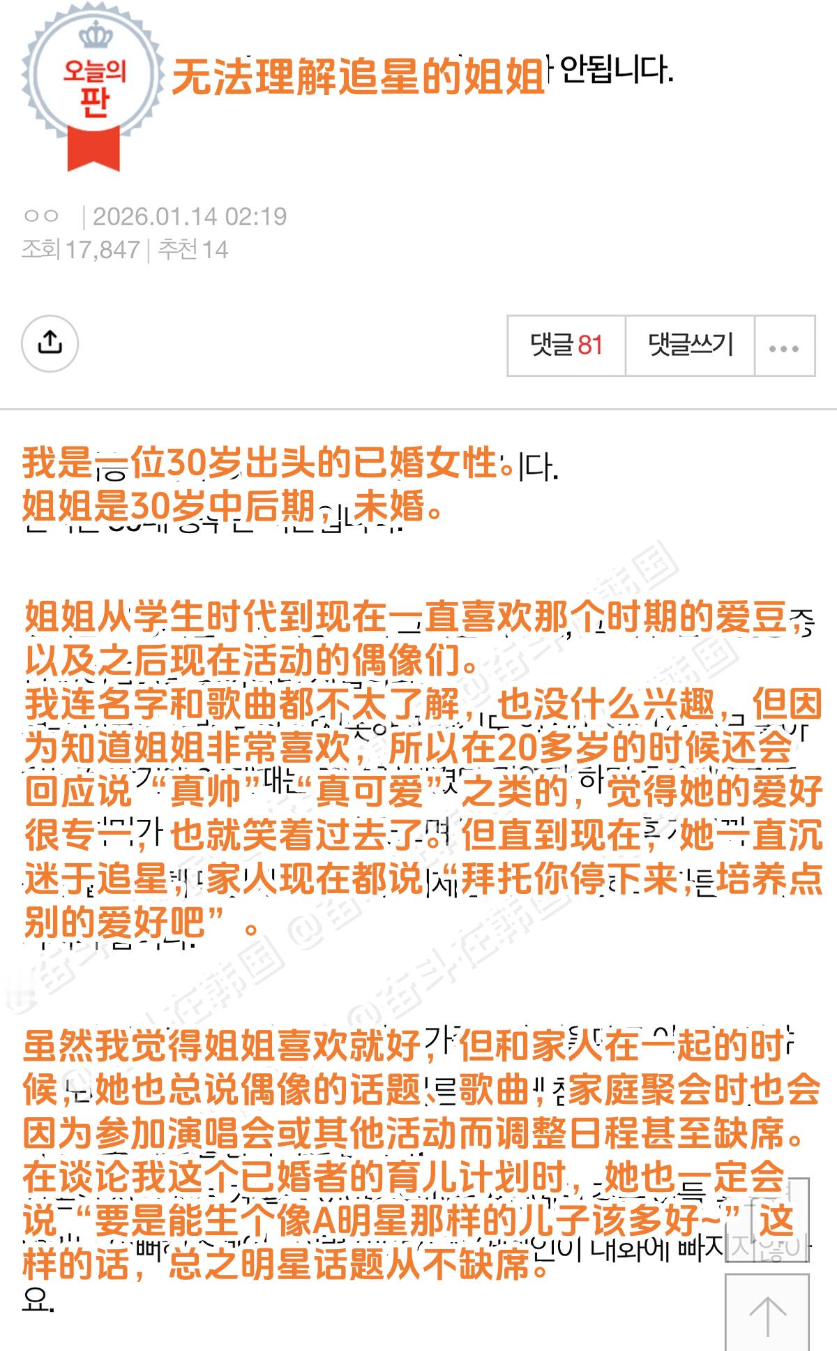 韩网热帖:无法理解追星的姐姐 海外新鲜事 热点现场