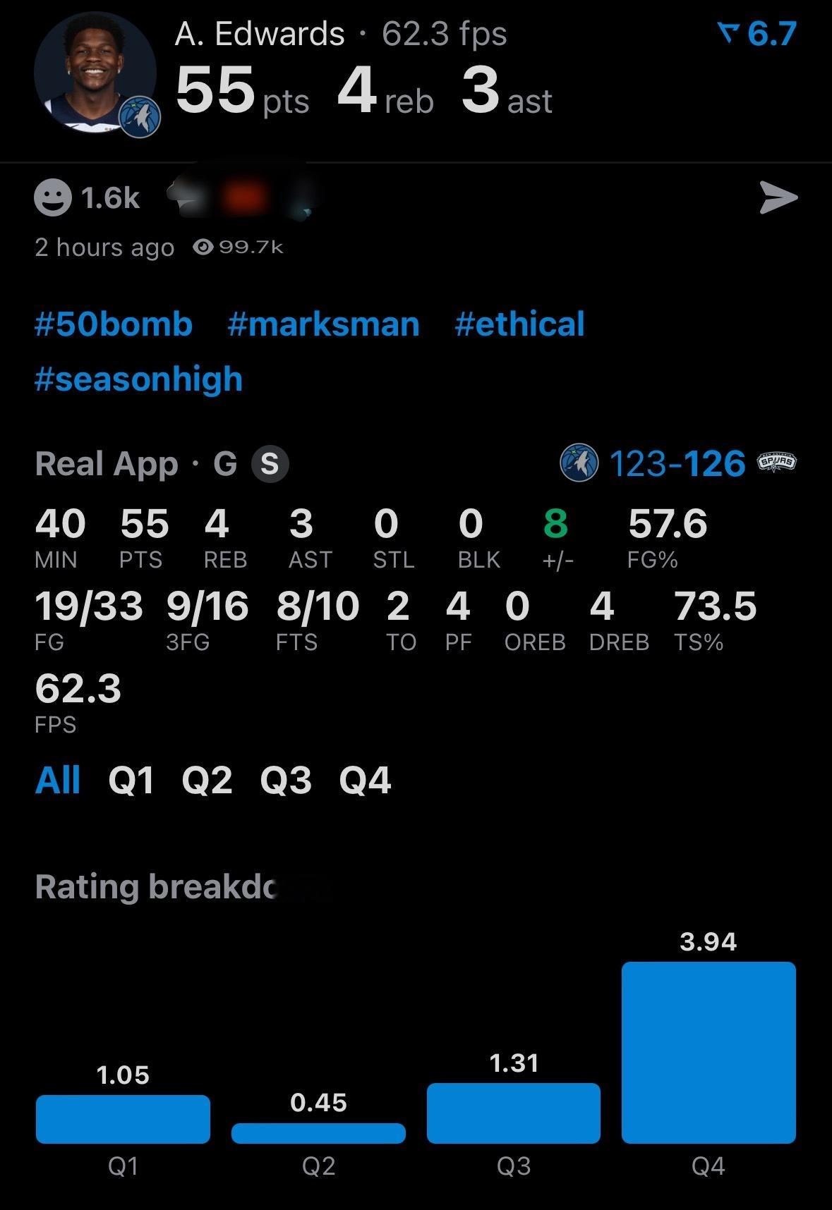 爱德华兹55分之夜输给了马刺 森林狼vs马刺