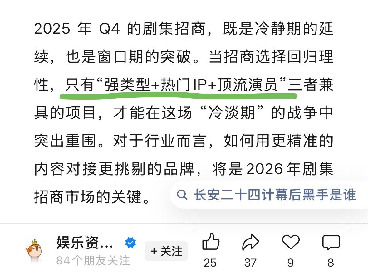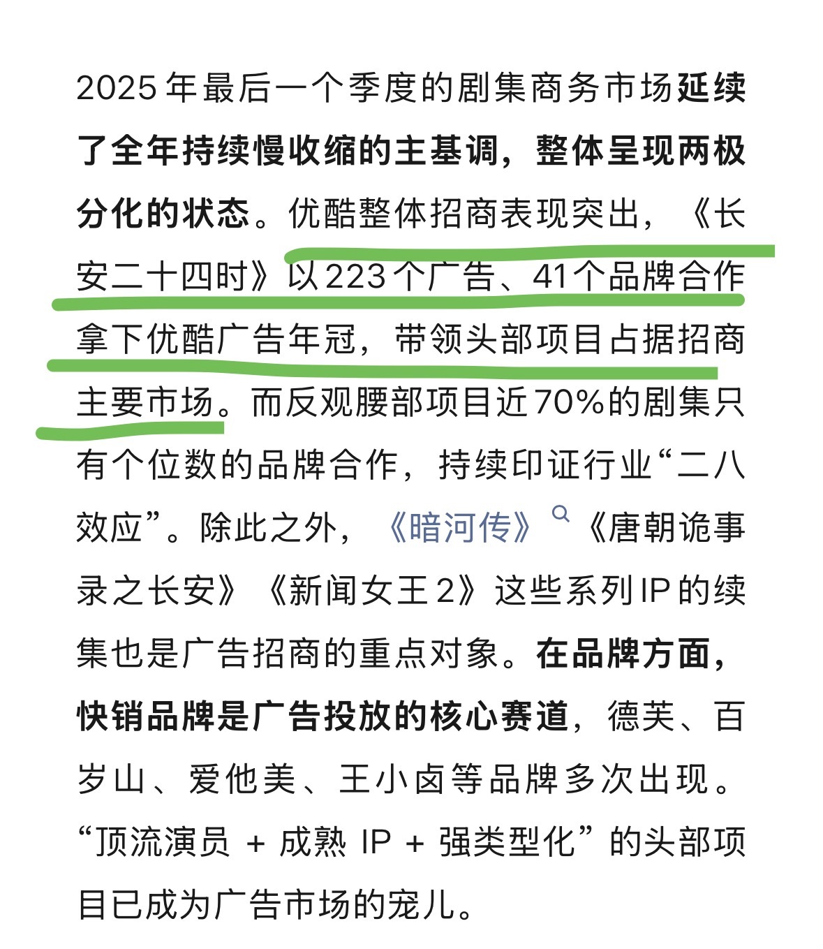 成毅长安二十四计再次被业内认证优酷招商年冠!划重点:年冠哦。堂堂正正的第一名就是🐮比。成毅扛剧扛招商,文武双全顶级实力派人气王。“强类型+热门ip+顶流演员”,影视寒冬,成毅就是一块金字招牌。