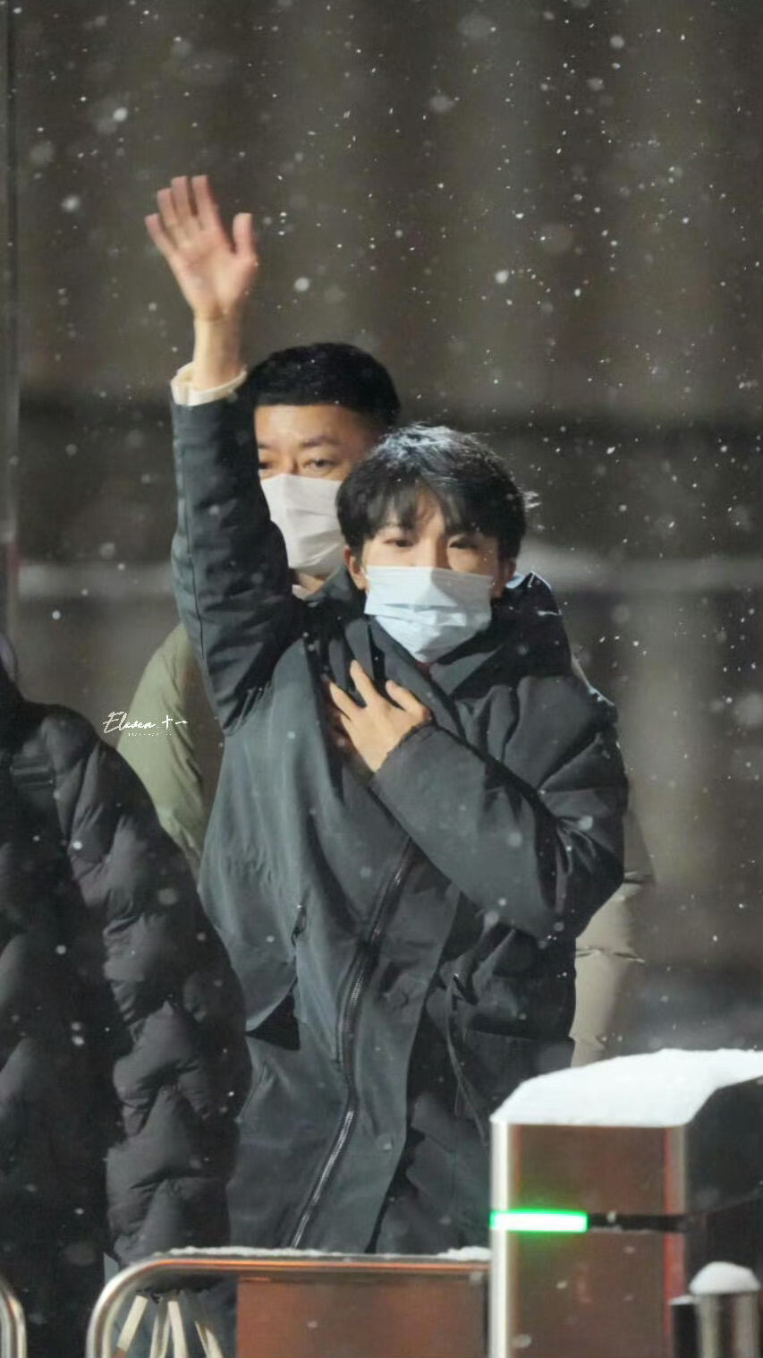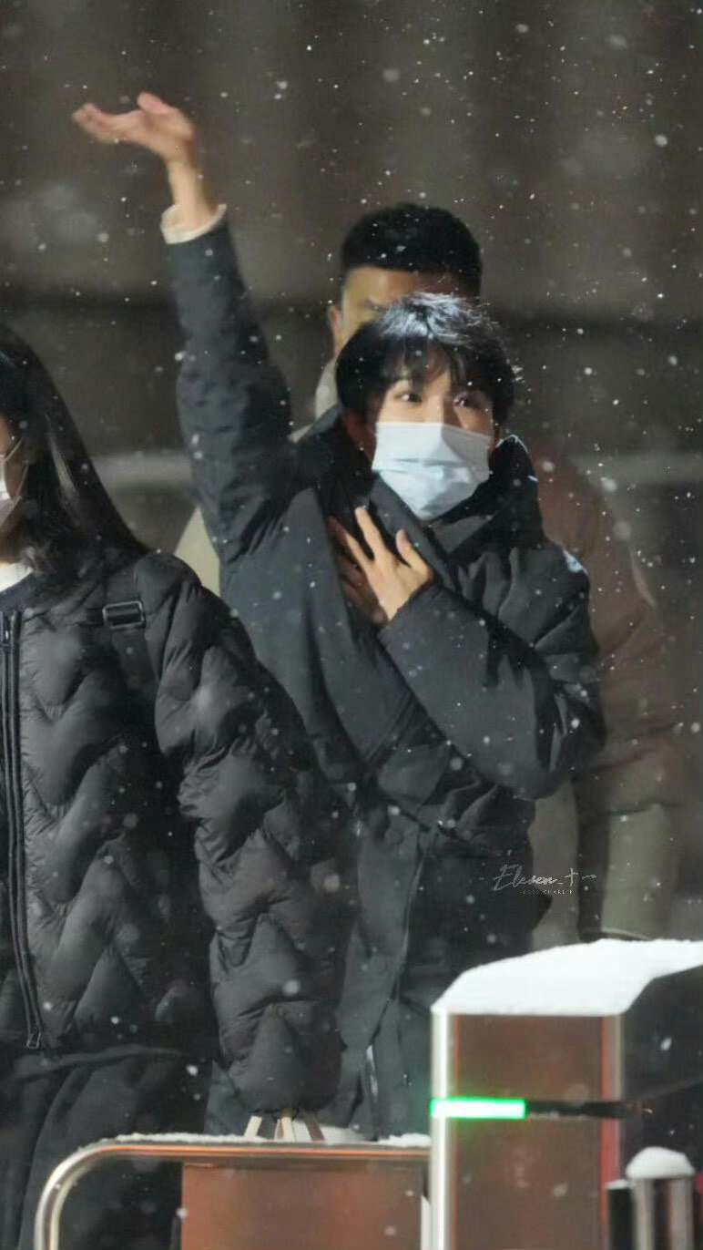 周深初雪路透 北京初雪轻舞,周深春晚彩排后走出,眉眼弯弯打招呼,手机屏亮着,难道在精心修图准备分享雪景?