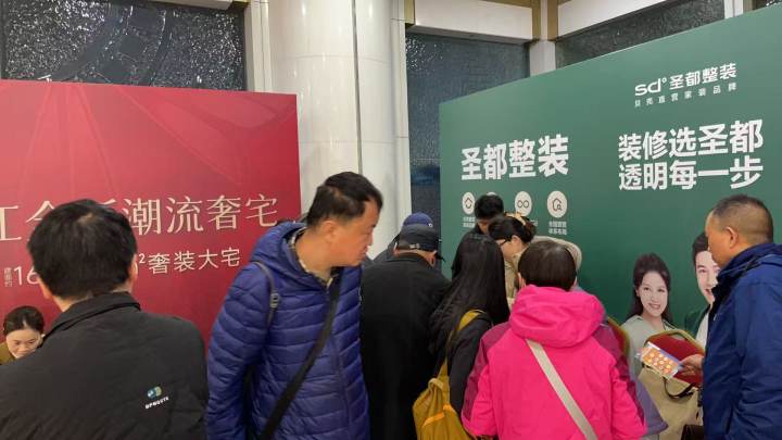 新楼盘展位、装修展位挤满了来咨询的购房者。