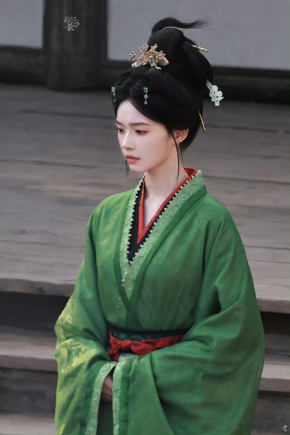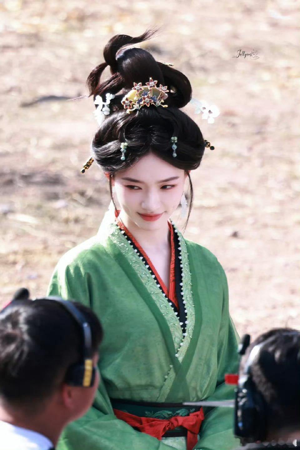 林允《归鸾》拍摄路透🈶,是绿衣温瑜耶,回眸这一下好美😍