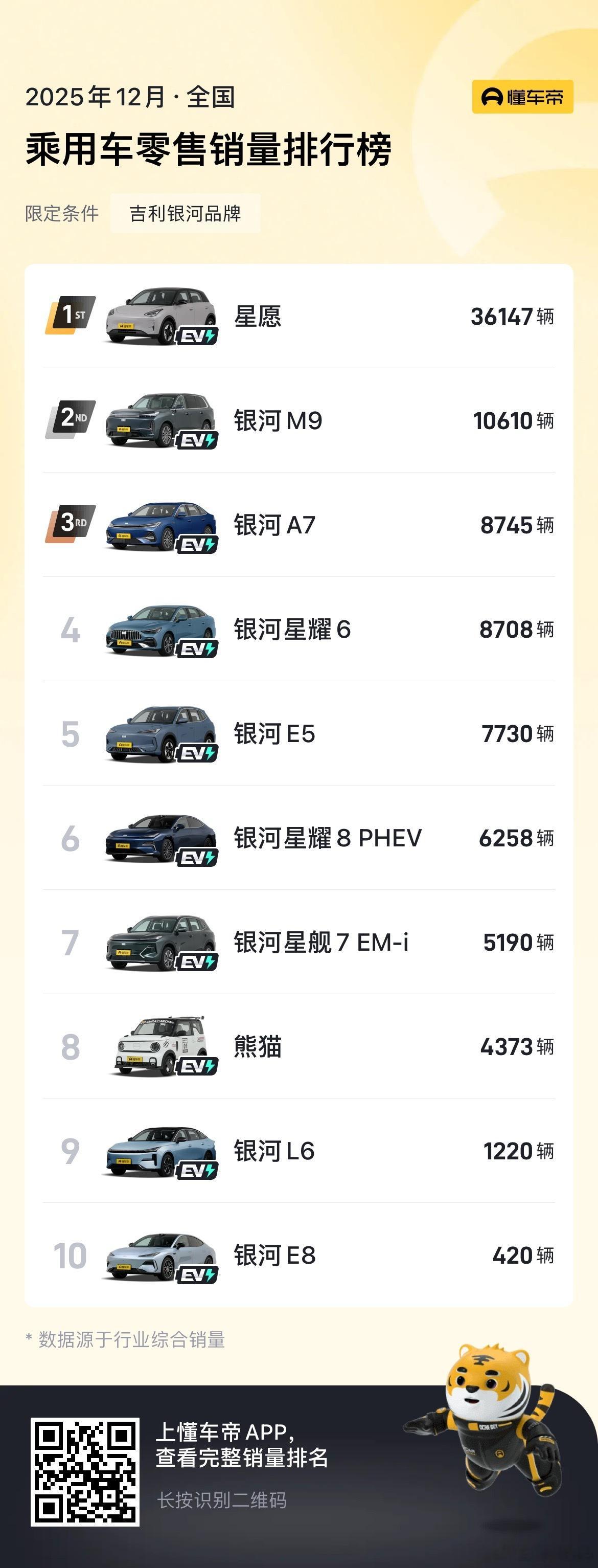 看了一下传统车企的几个新品牌12月销量。懂车帝这个应该都是国内的销量。不包含出口,数据就不怎么好看了。1深蓝:月销没有过万的,1000台以下的4个车,g318少见的方盒子中没卖好的车型。2极氪:月销没过万的,但是第一的极氪9x销量9400多。并且价格40万+。Mix和x属于叫好不叫座,创意不错市场反应冷淡。3,埃安:月销没有过万的,i60和Y是主力。ut的销量算是回血了一点。但是对比星愿等,差的还很远。如果ut能月销一万多,埃安日子会好很多。4,智己:没月销过万的车型,Ls6和ls9销量支柱了,都是带发动机的车。所以有个发动机是真的好卖一点,而且还是大电池。Ls7和l7还有几十台销量,想想办法升级一下吧。可惜了7系。5,银河:目前销量最大的新品牌,星愿和m.9承担主力,学习比亚迪的方法不错。6,方程豹:钛7牛逼。方程豹还是找到了自己的路,逐步摆脱了硬要越野的嘲讽,毕竟不是谁都要去爬坡。把产品的情绪价值做到位也挺好。7,风云:奇瑞在风云上还是要努力一下。对比吉利比亚迪,风云的核心张力还不够。连续多款产品,目前还没有过万的,对于主打主流市场的品牌来说,显然是不够的。整体来看,能过万的车型还是凤毛麟角的,动不动就订单好几万,真要掏钱的时候,很多人还是理智的。
