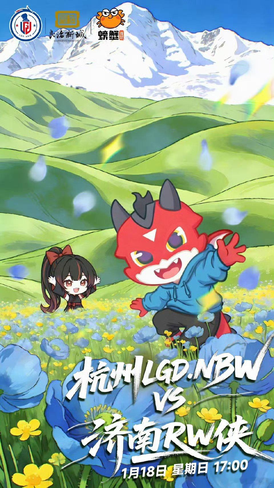 LGDNBW对战RW|赛前海报17: 00杭州LGDNBW 「蓝花漫野,雪山白头」济南RW侠「一鸣从此始,相望青云端」