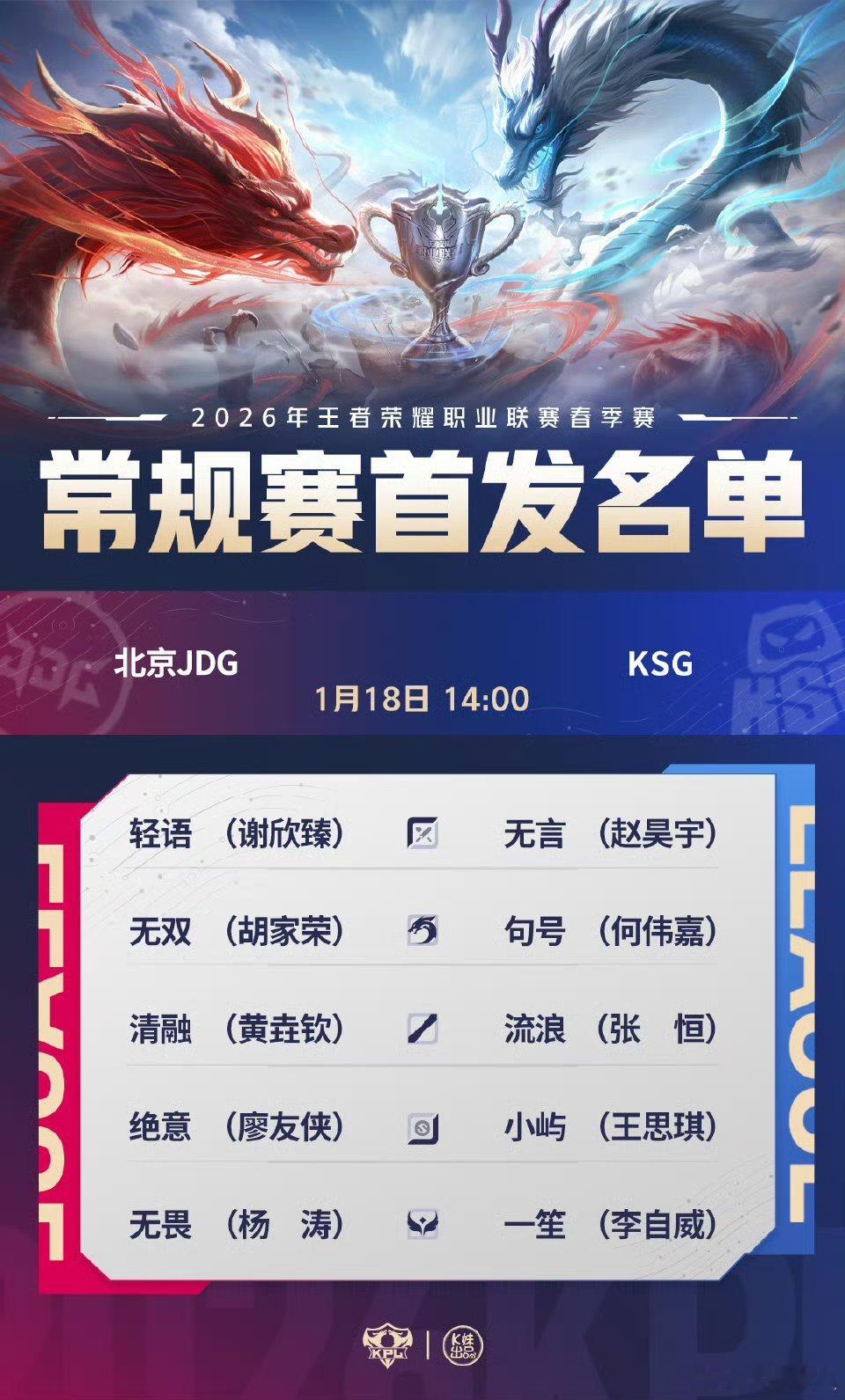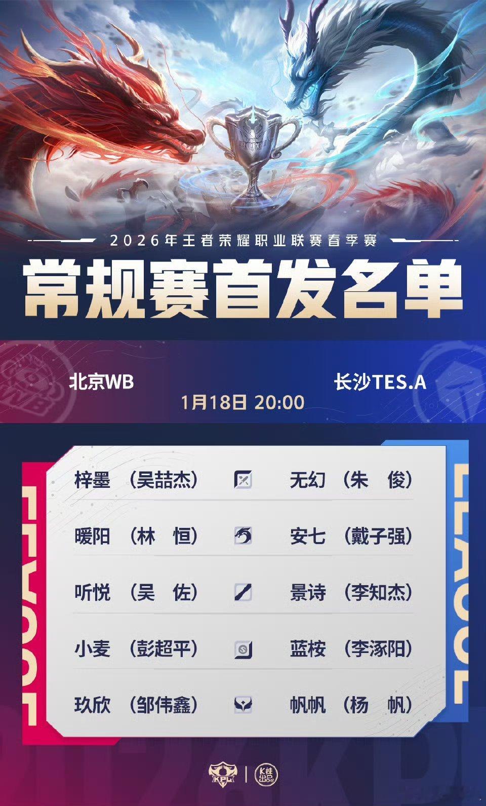 2026KPL春季赛今日首发名单