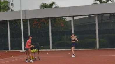 网友在新加坡偶遇关晓彤,背着球拍好像是要去打网球了,此女身材就是如此曼妙