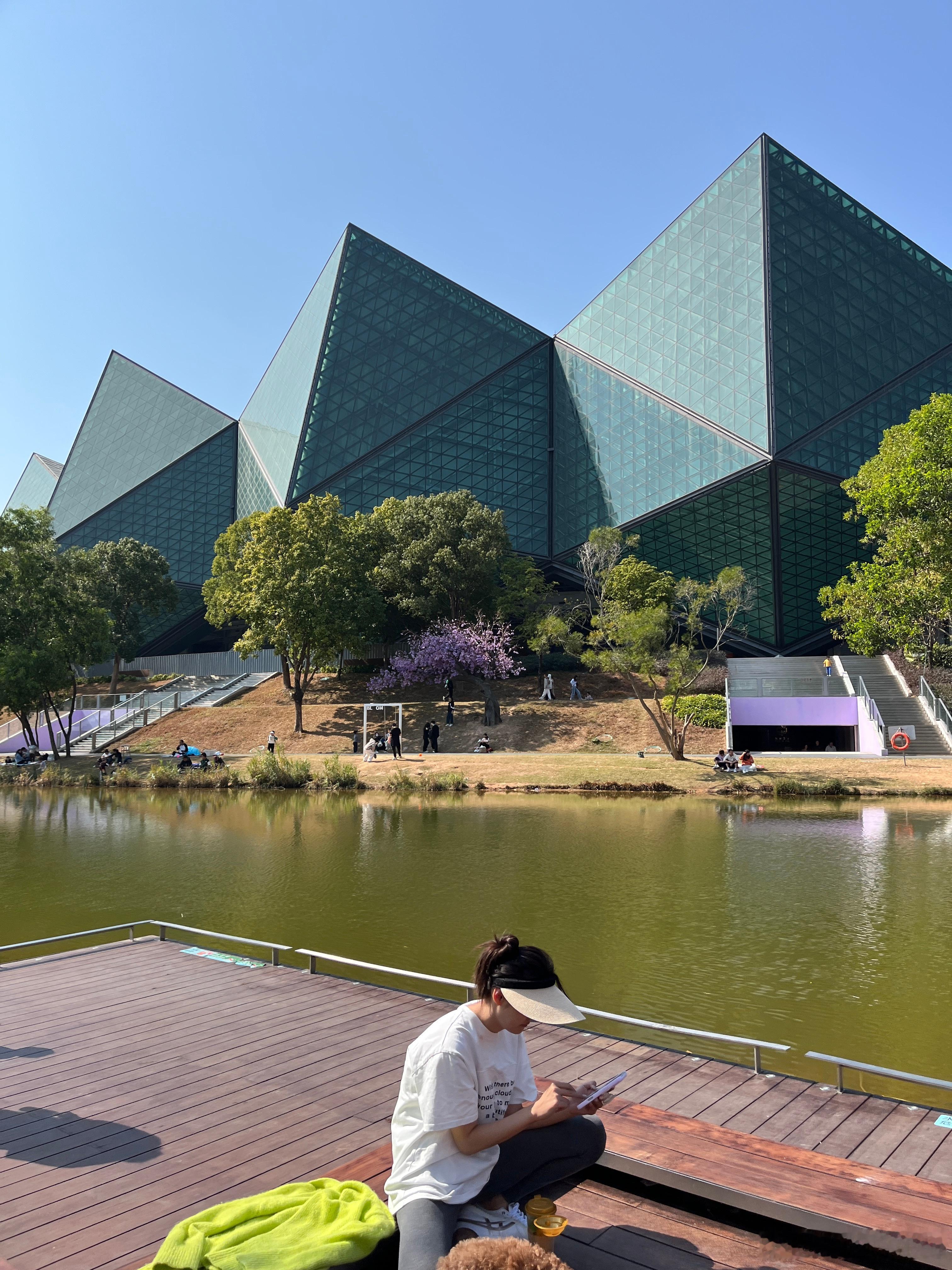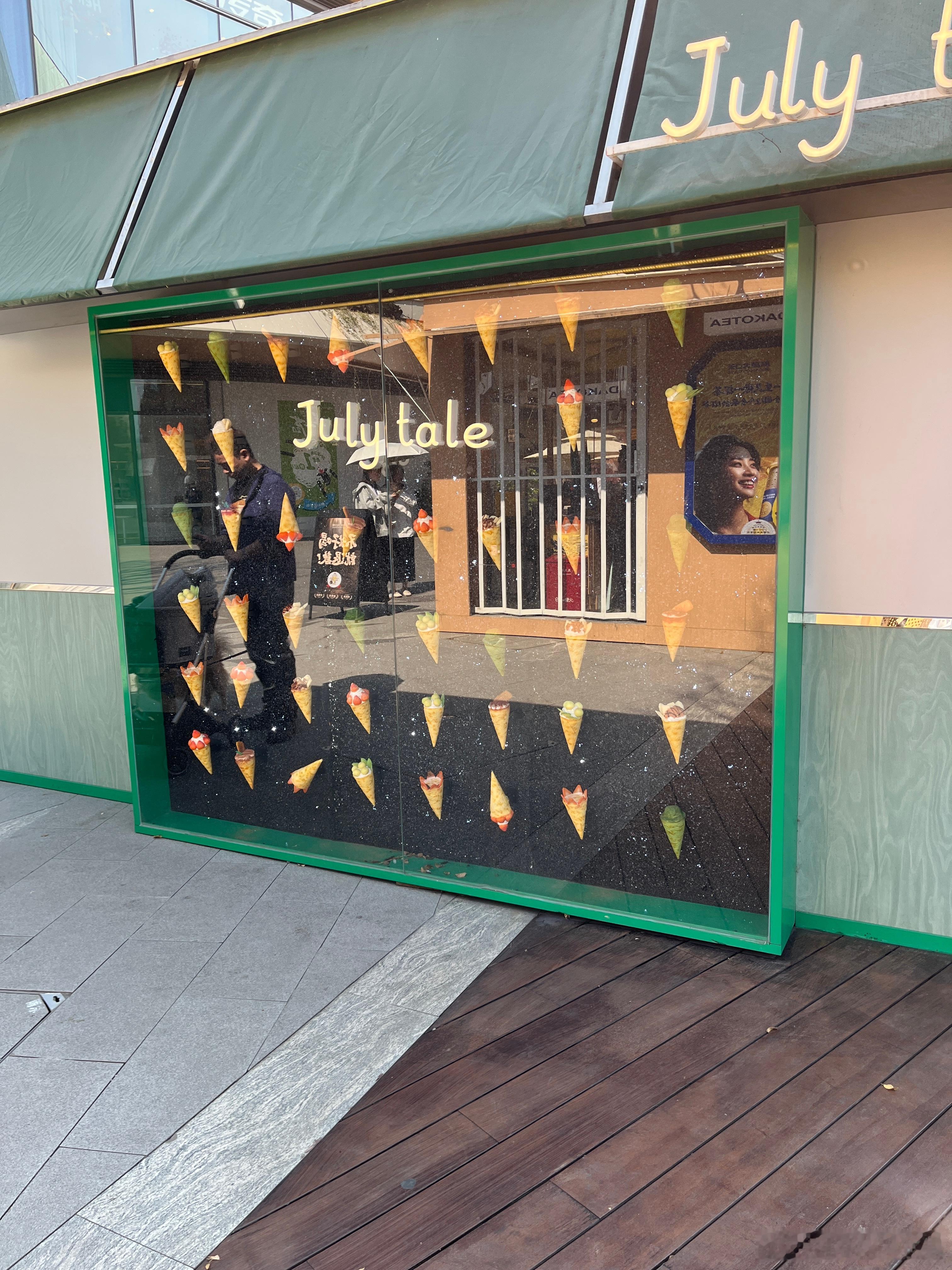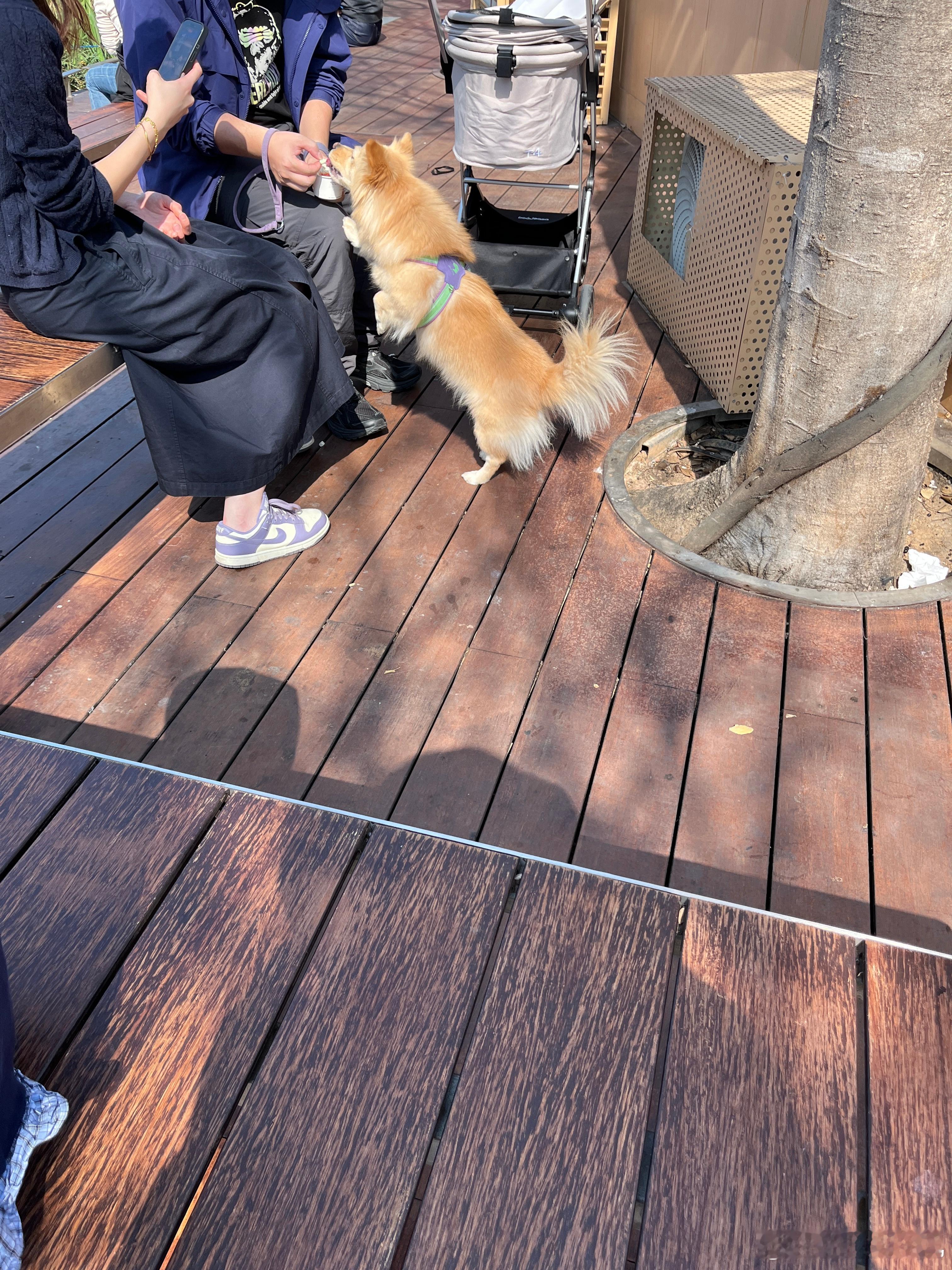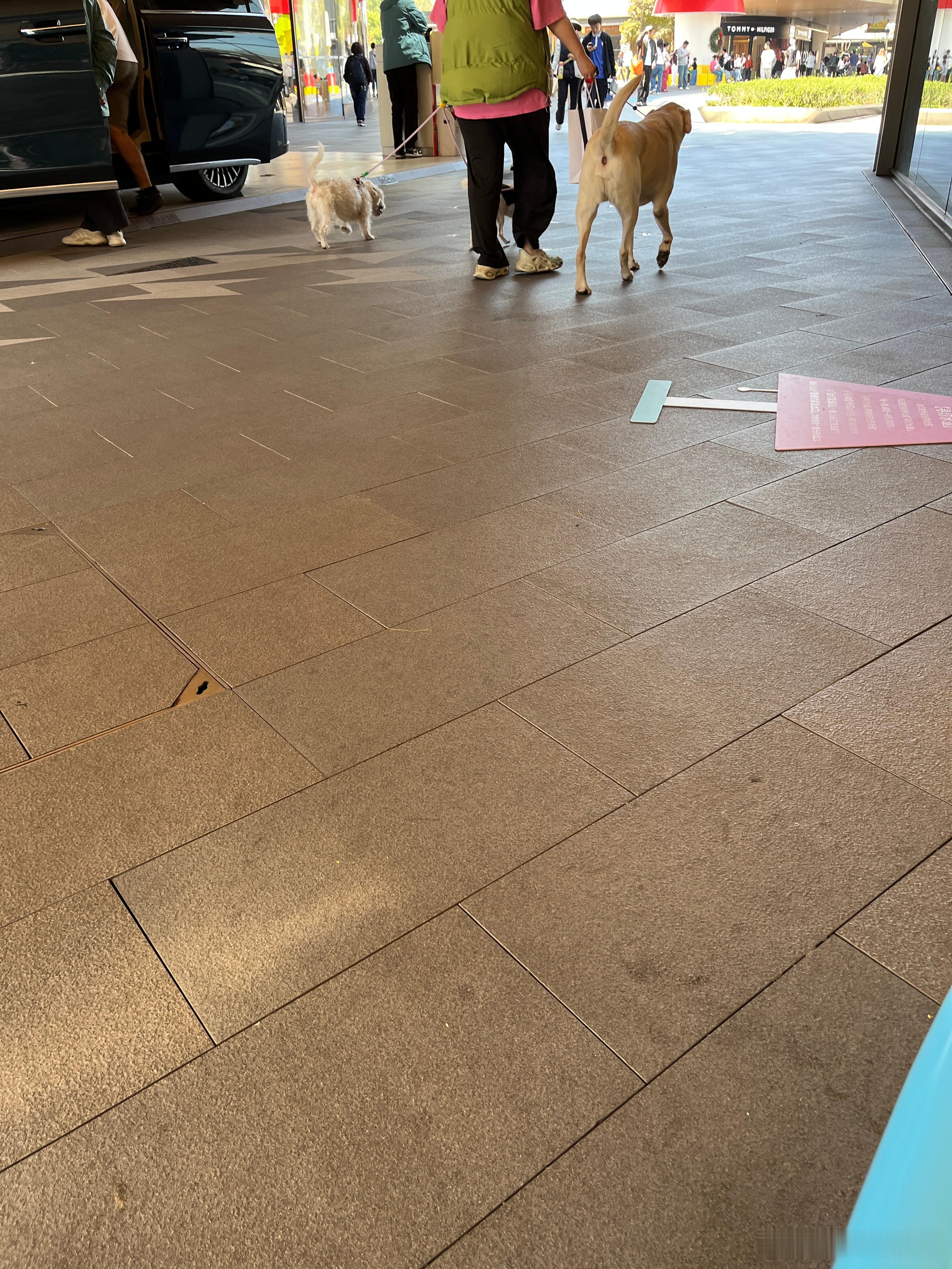 图一养三个狗,带3个狗逛街,大户人家。图二的狗吃冰淇淋,好像还不便宜,还有推车推着,吃得比我好,过得比我还舒服同学妈妈说这里可以钓鱼,我们只有鱼网,捞不到,只能看看,确实好多鱼。这里逛街太舒服了,又是露天,还可以走走,看看鱼,风景。
