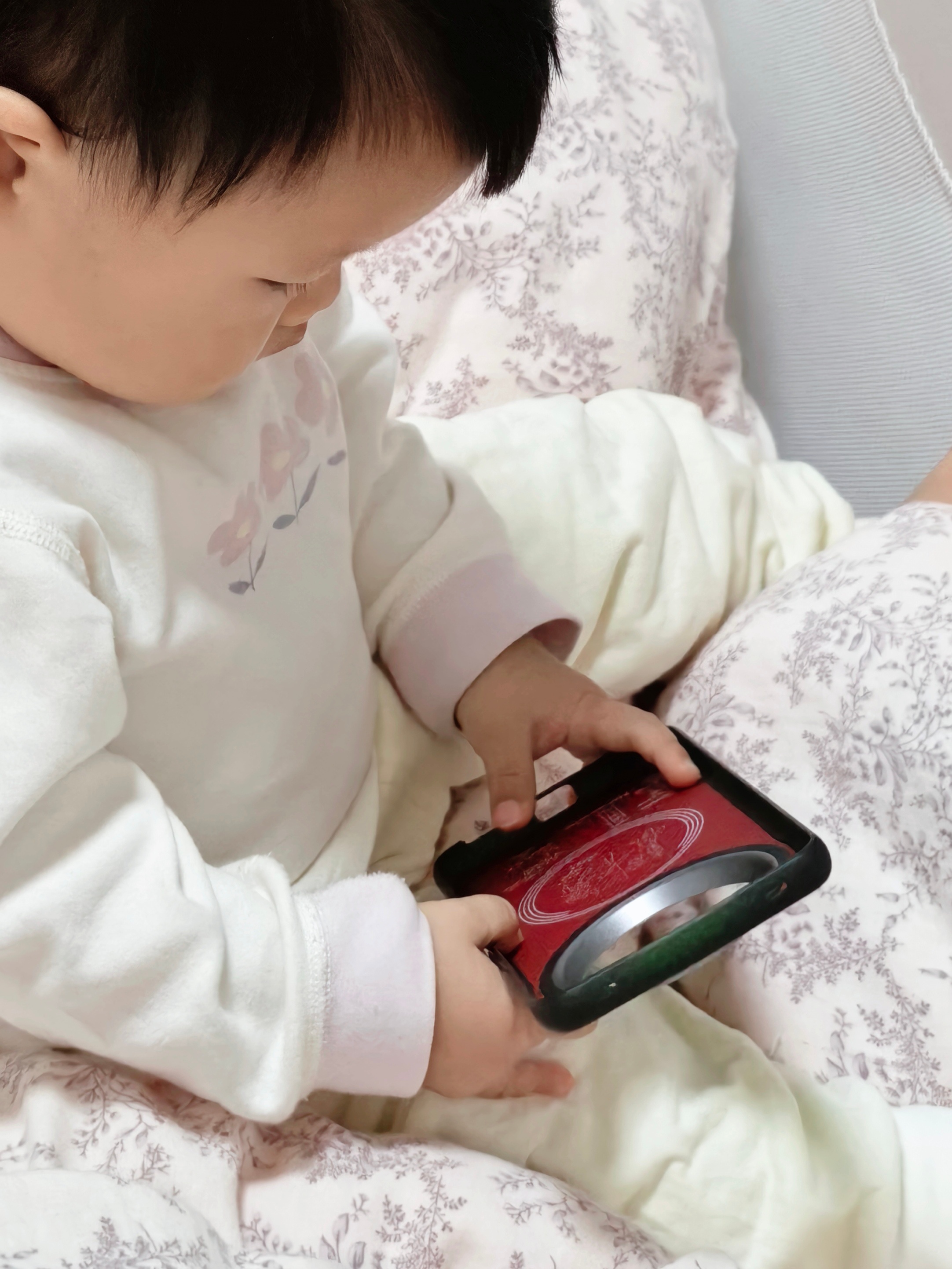 在闺女眼里,万物皆可成玩具。比如,我的手机壳。