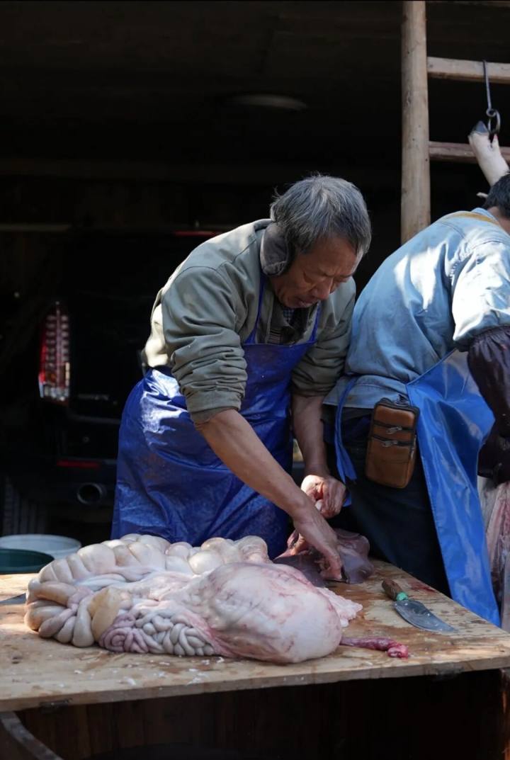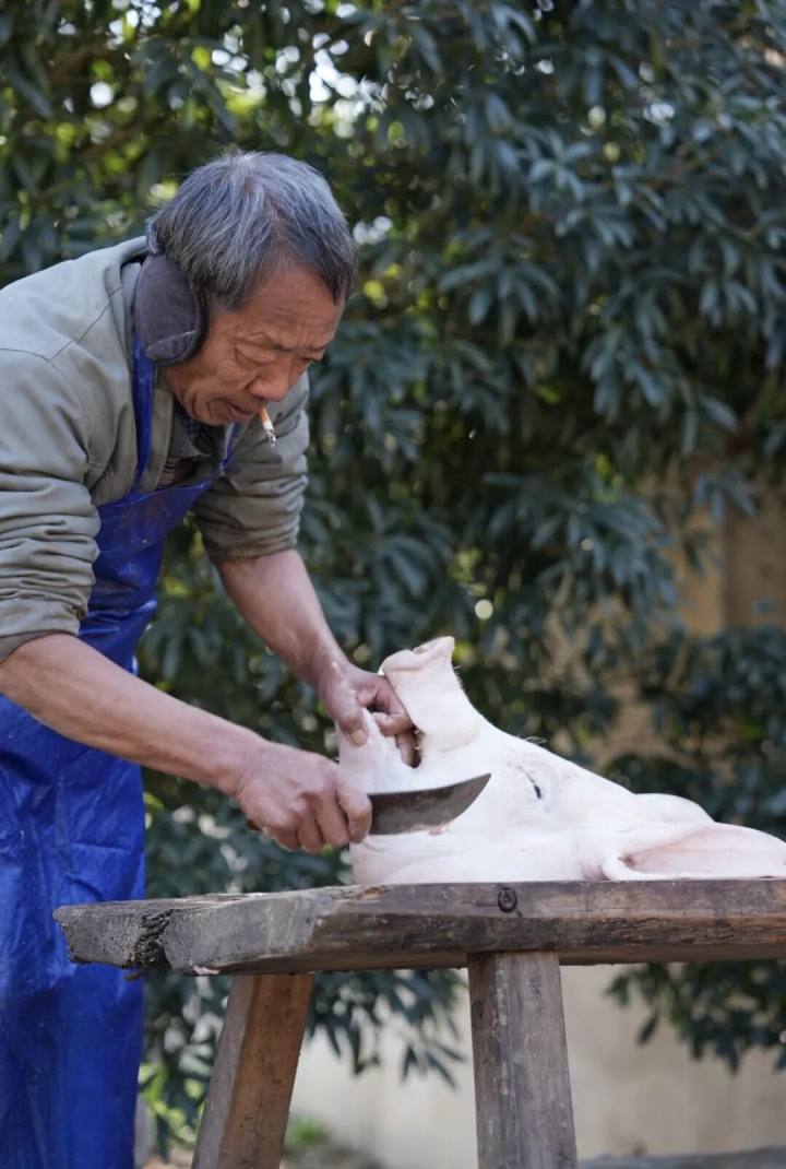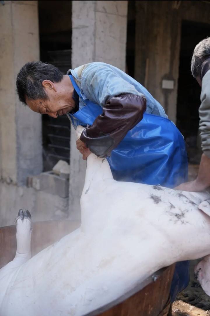 猪在生命的最后时刻能遇到老师傅,会没那么痛苦。刀子捅不好,猪走得不彻底,痛苦不已。这个分寸,最见功力。