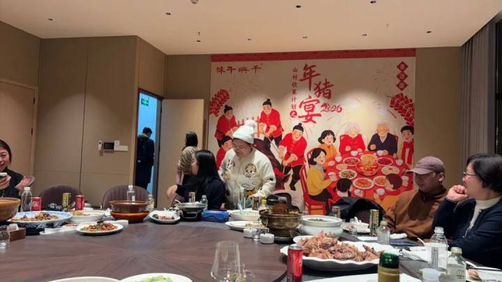 临近尾牙,邵贤彬脑回路一动,有了个主意,把农村的年猪宴搬进城,把年味拉满。