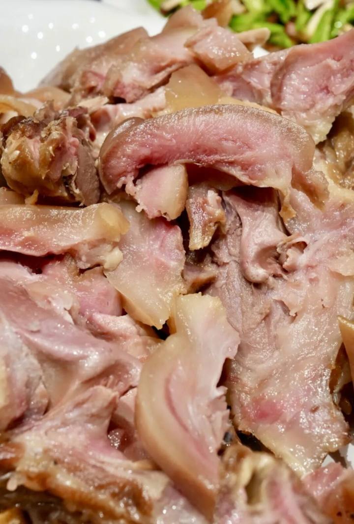 猪以鼻冲拱万物,猪鼻子特别有内涵。当然,咸猪头肉各部位切来,都是下酒隽物。