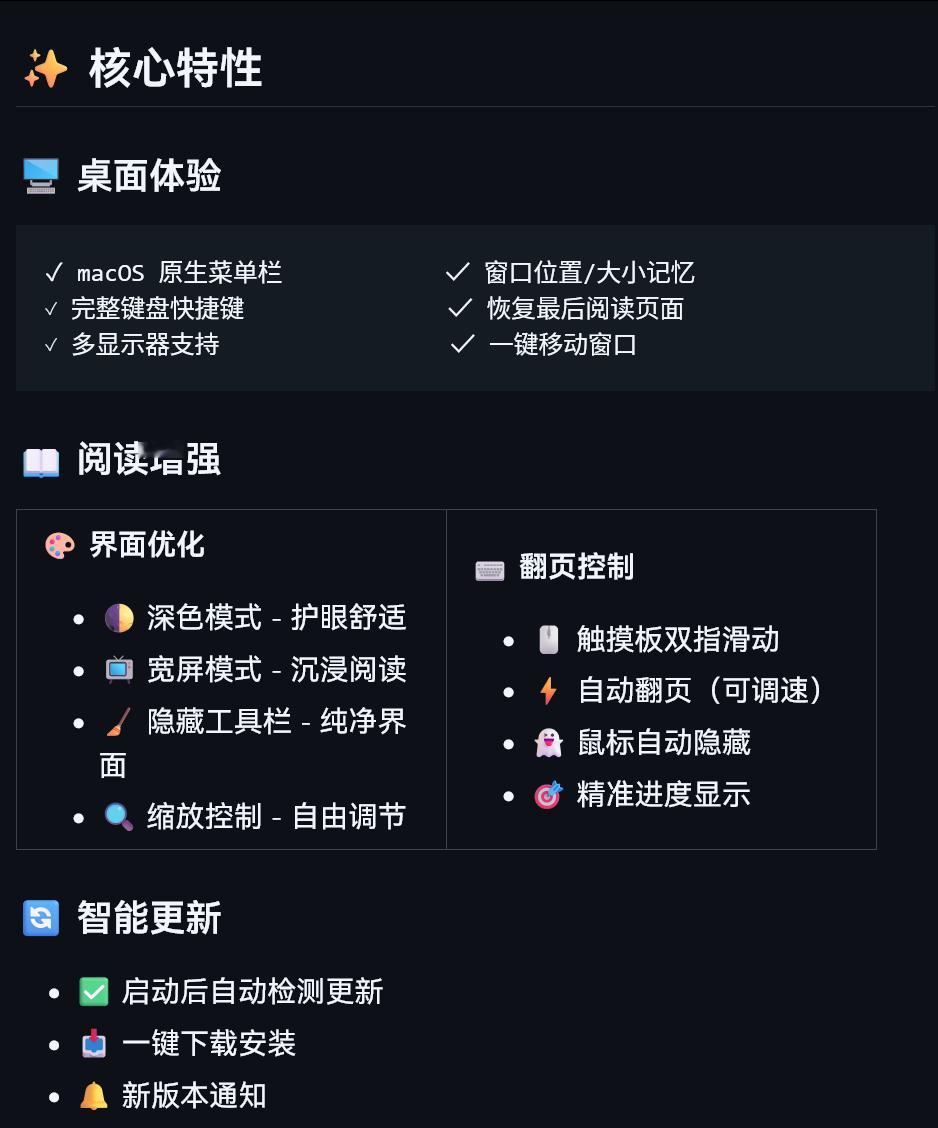 macOS上的一个开源的、基于 Tauri v2 + Rust 的高性能微信读书桌面客户端(注意是非官方客户端)github.com/dengcb/weixin-reader-desktop 通过脚本注入方式增强官方 Web 端体验,完全兼容官方功能的同时提供更好的桌面体验科技先锋官