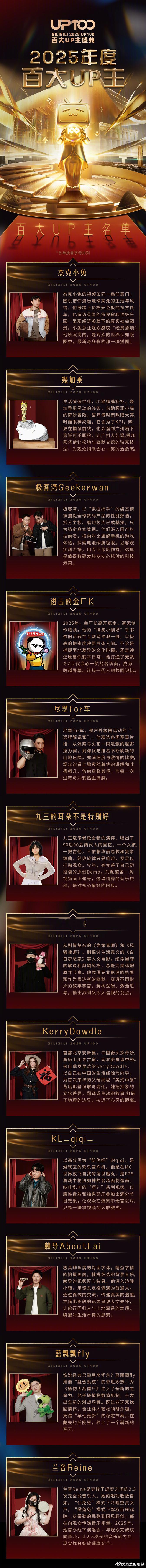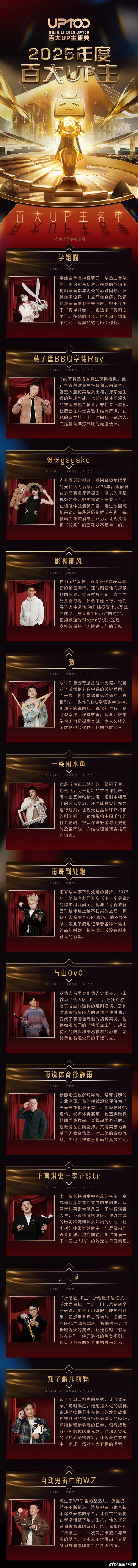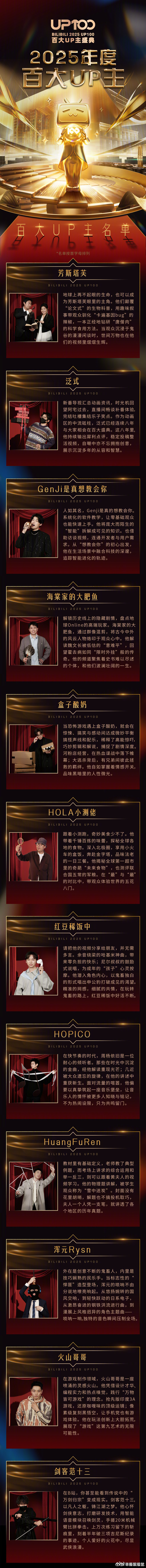 2025百大UP主名单2025B站百大UP主名单来袭!每一位都是创作先锋,今晚盛典,一起见证内容王者的荣光!