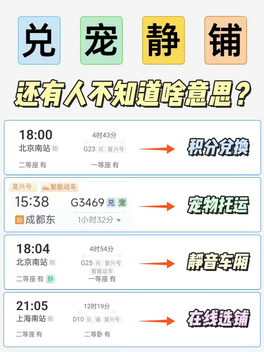 12306购票页面出现雪字我以为这个“雪”是提醒目的地有雪,原来是可以预约随车携带学具,不过南方的朋友应该是体验不到了!现在买火车票真的是越来越人性了,各种标识列车越来越多,我之前也就体验过积分兑换和静音车厢…