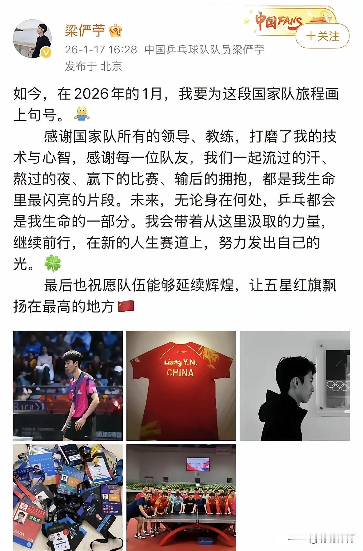 25岁梁俨苎退出国家队,国乒人才困境引唏嘘 25岁国乒选手梁俨苎官宣退出国家队,这位曾击败马龙/陈梦混双组合、斩获WTT赛事亚军的选手,在黄金年龄离队令人惋惜。 国乒前线急需拔尖人才顶上去,可梁俨苎近年受状态起伏、伤病影响,始终未能跻身主力层;而队内竞争残酷,后备力量不断涌出,让他逐渐淡出阵容。前线顶不上去,后面又不停有人离开,这样的人才流动折射出队伍的现实困境——既需要顶尖选手扛旗,也得为新生代留出上升通道。 退出不是告别,期待他在乒超或地方赛场续写乒乓故事,也盼国乒能破解人才困境,稳住梯队建设。