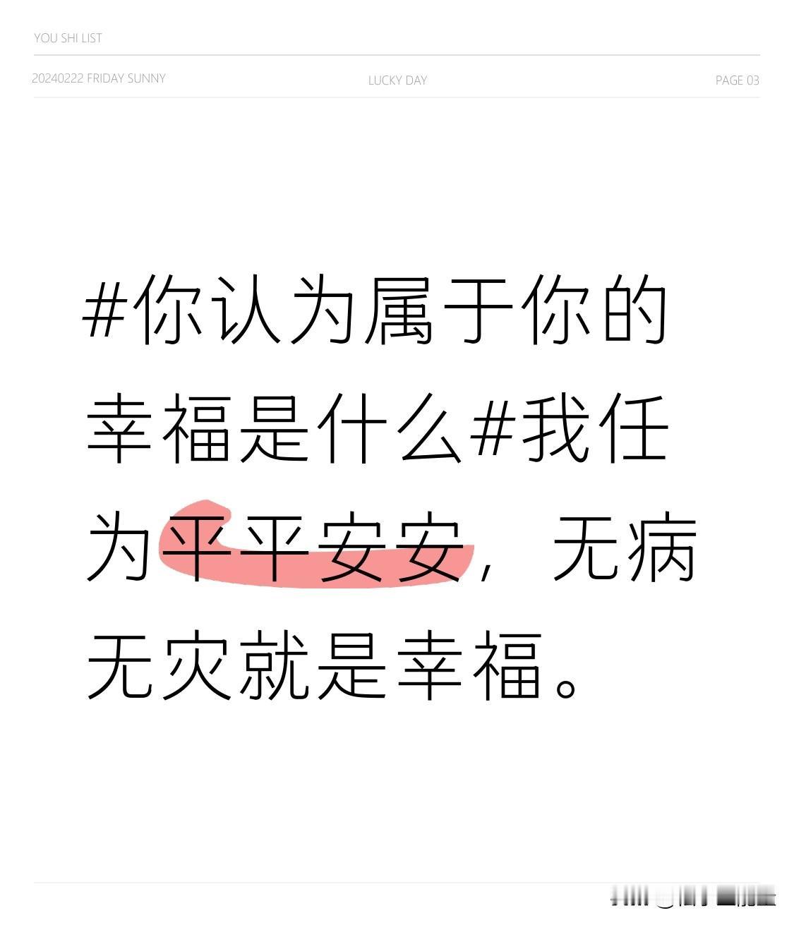 你认为属于你的幸福是什么我任为平平安安,无病无灾就是幸福。