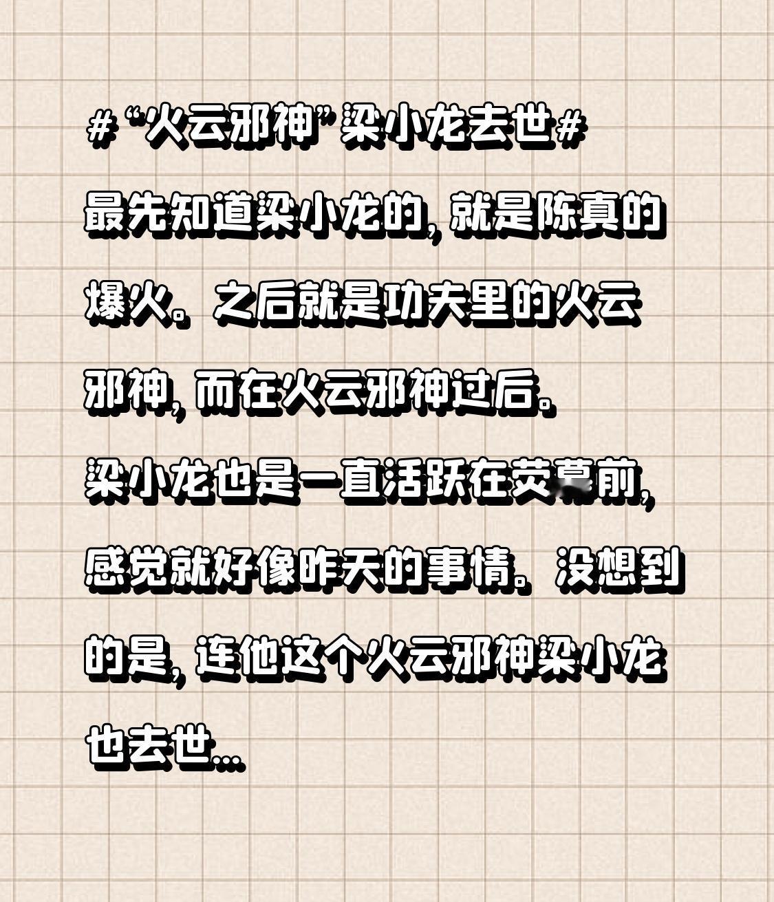 没想到的是,连他这个火云邪神梁小龙也去世了。 这就是所谓的世事无常,所以我们还是