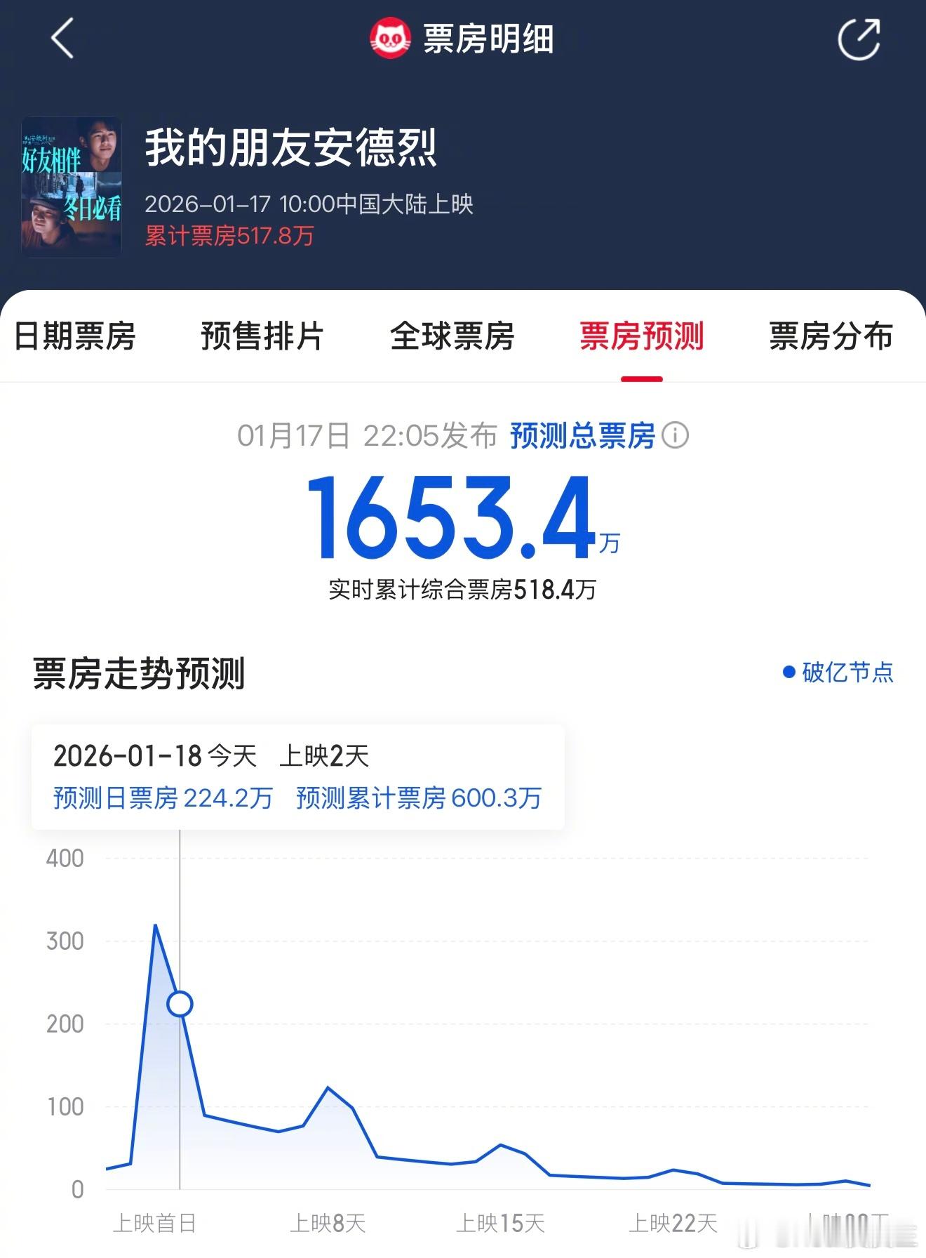 刘昊然、董子健《我的朋友安德烈》预测总票房已经降至1600左右了……怎么会低到这么离谱?