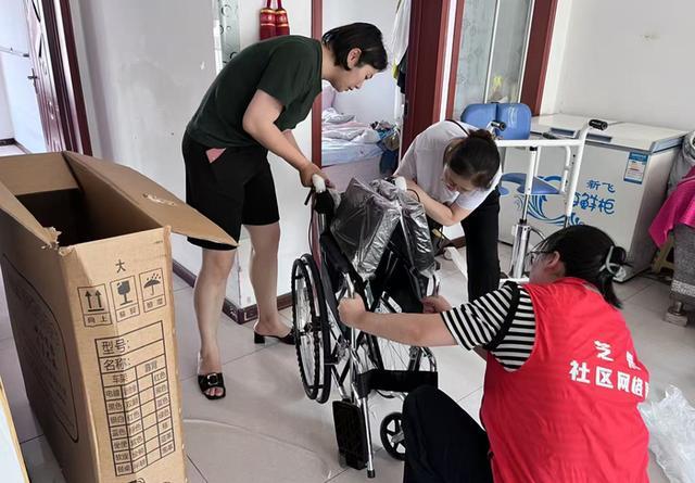 △社区志愿者上门为行动不便的老年人安装轮椅