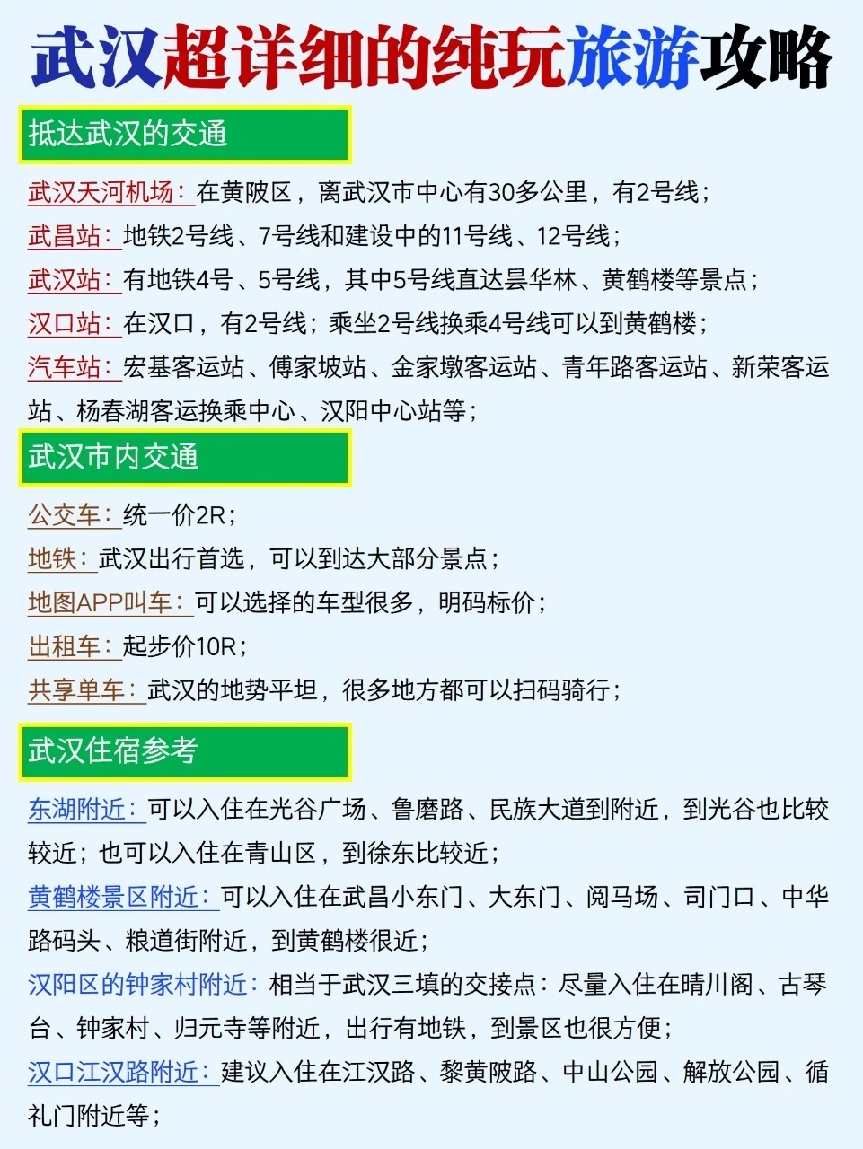 来武汉旅游一定要知道的注意事项,不啰