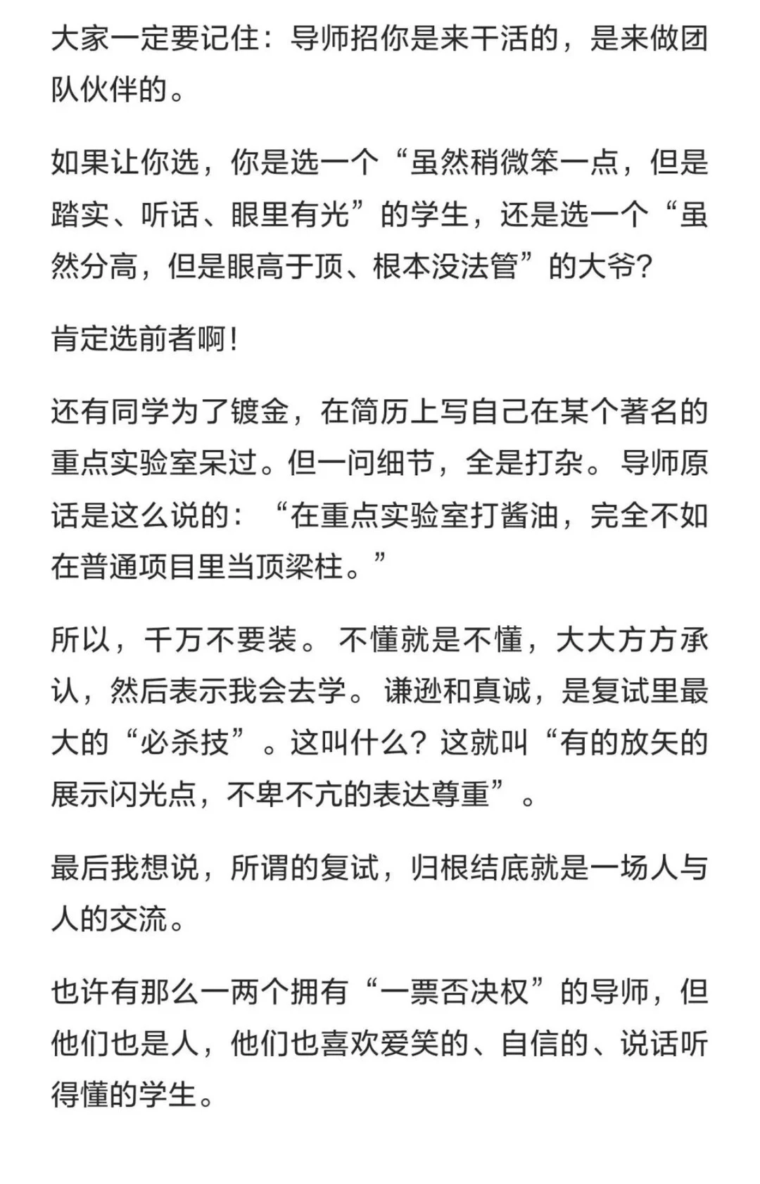 你们脑补的画面是不是这样的:一排严肃的考官,拿着你的简历,像HR一样用放大镜找你的漏洞,手里还有一张精密的评分表,错一个词扣一分?完全错了,这是hr的工作,很多导师他根本就不可能做过HR,也没学过什么人力资源心理学。他判断一个学生好不好,往往没有什么精密的公式,靠的