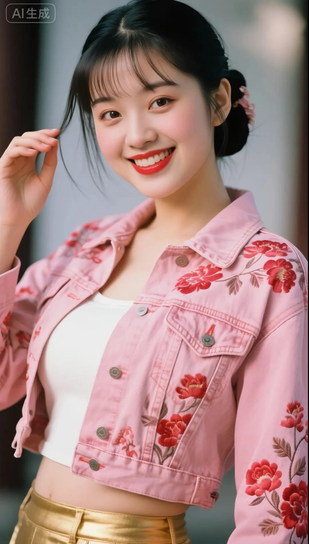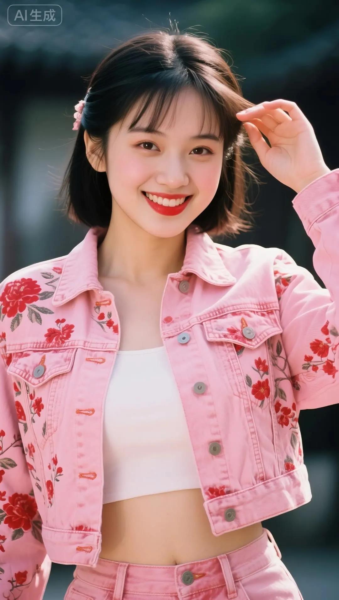 甜美少女风穿搭,粉色牛仔外套搭配白色背心,元气满满!💕🌸
