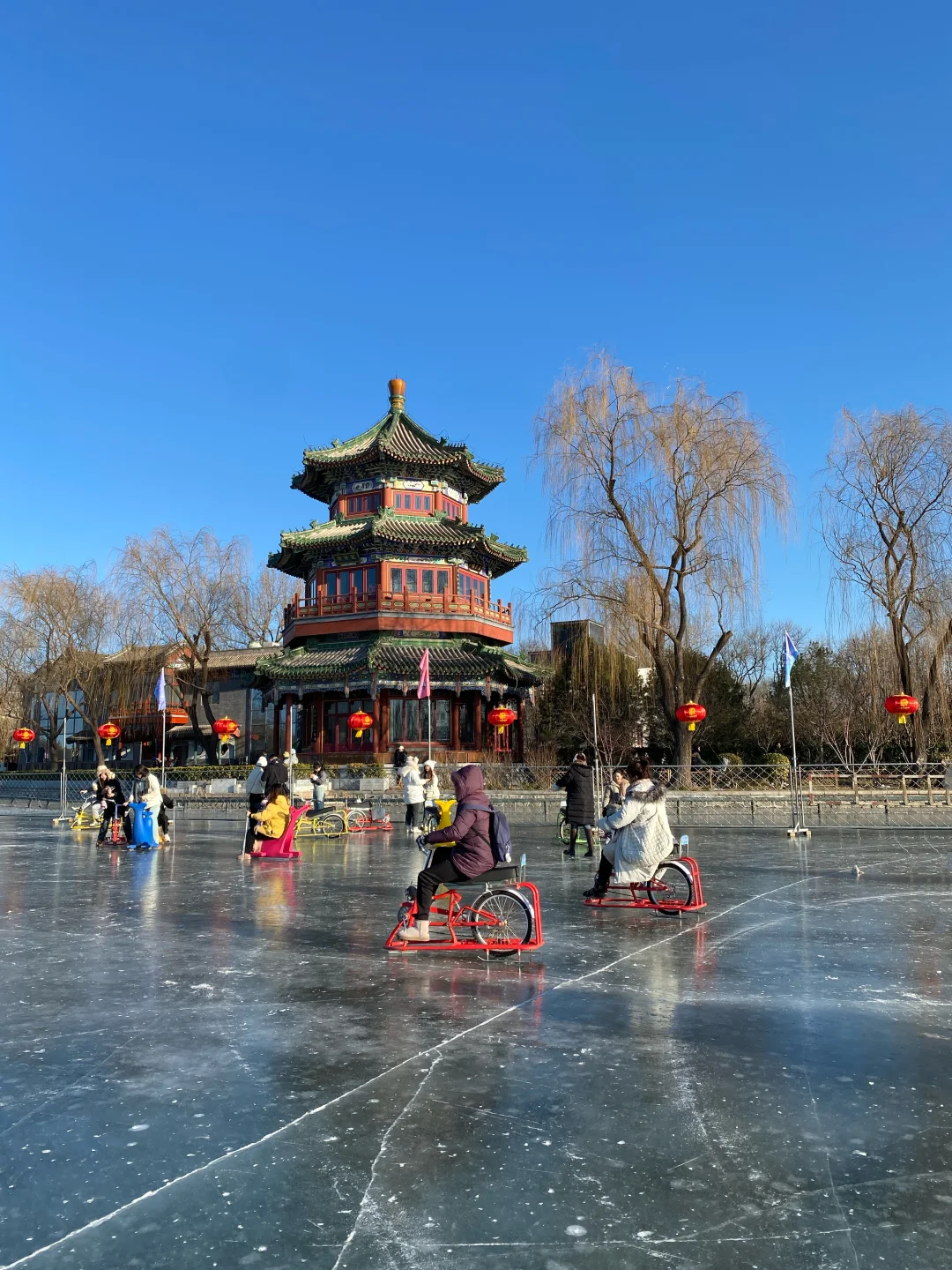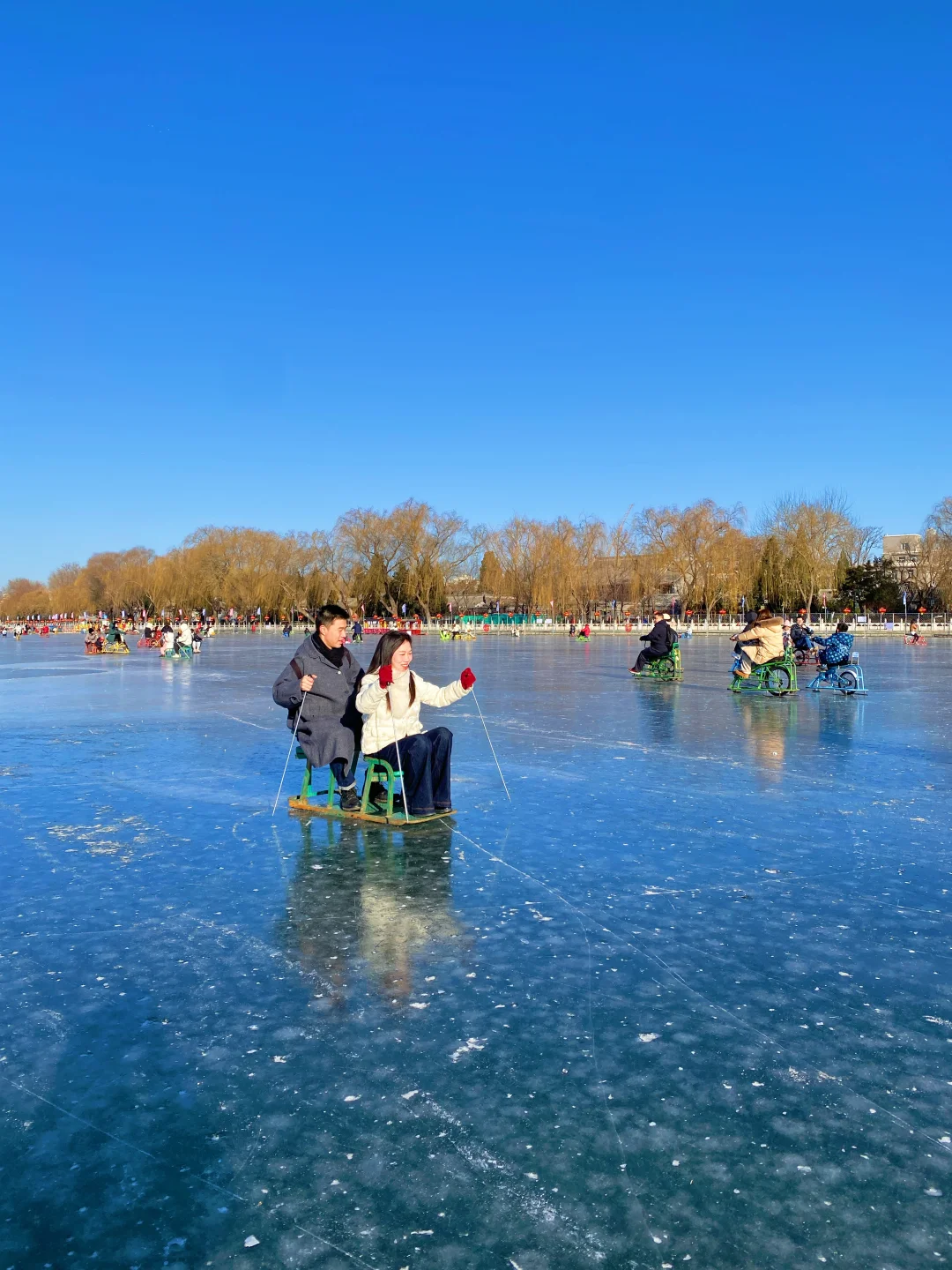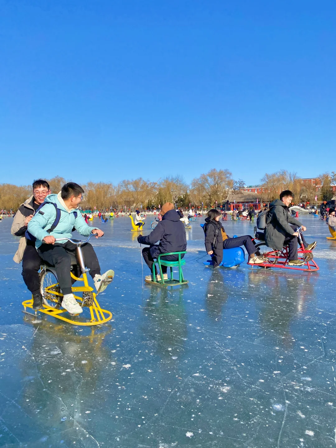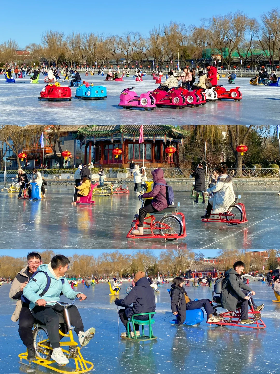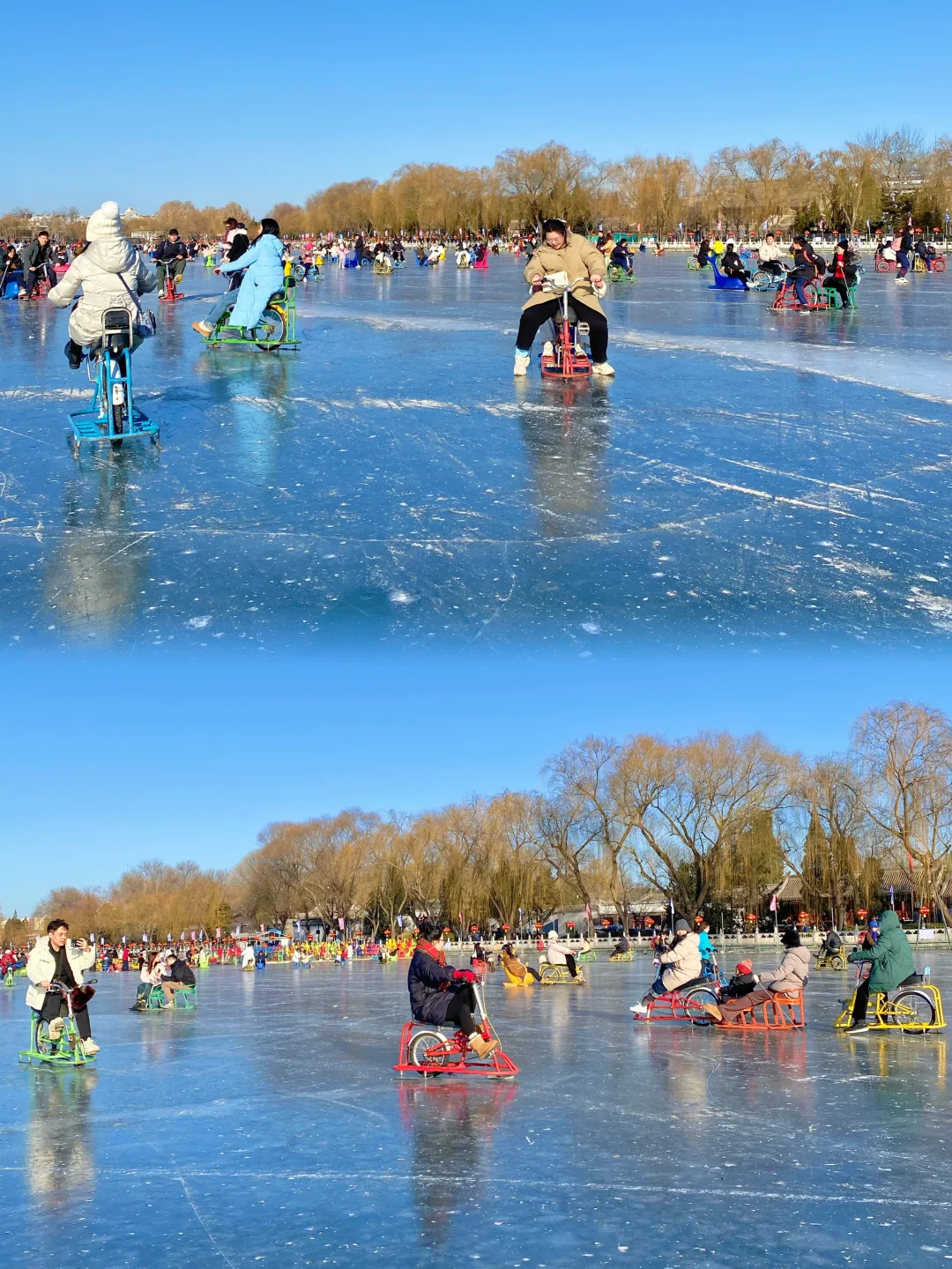 1、冰上自行车:省力又快,很推荐,蹬起来嗖嗖的,但是数量有限,非常抢手