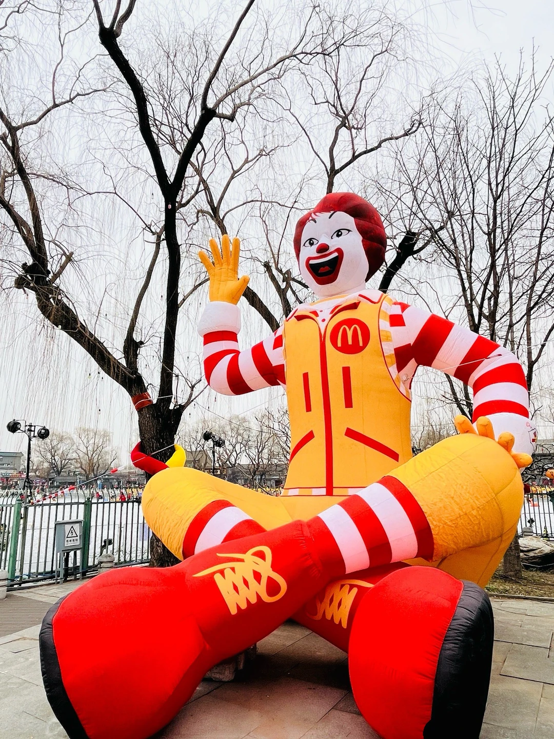 2、什刹海前海冰场的中央,有一个超大的“麦当劳湖心岛”快闪店,可以点杯咖啡,吃个汉堡~