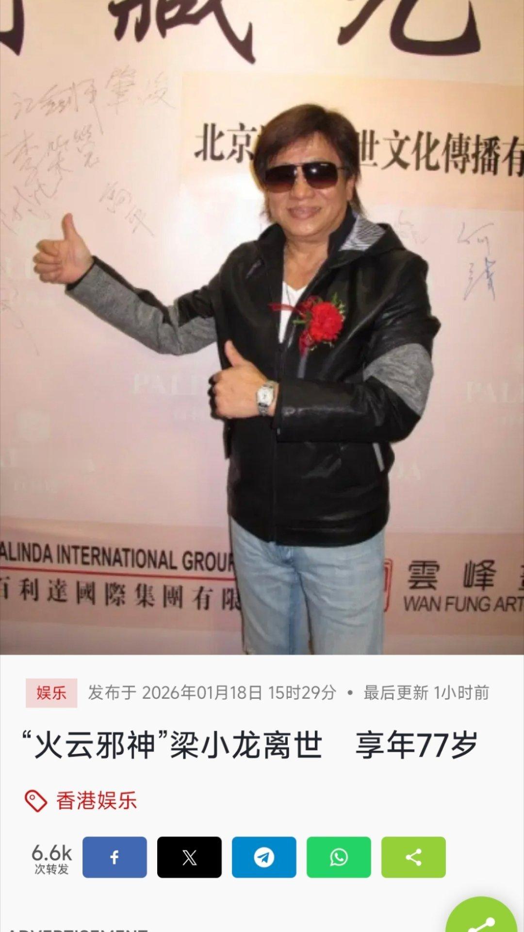 香港四小龙还剩下2人这位太突然了,经常刷到他。¹ 最大印象是他坚决不认可周星驰“捧红”他。他有他的逻辑。² 但两岸三地媒体最后还是多以“火云邪神”做大标题。³ 一辈子基本上三个闪光点:一是1970年代短暂地跟李小龙、成龙、狄龙并称“四龙”。二是1980年代演陈真红遍大江南北。三是演周星驰电影里的“火云邪神”翻红。热点科普
