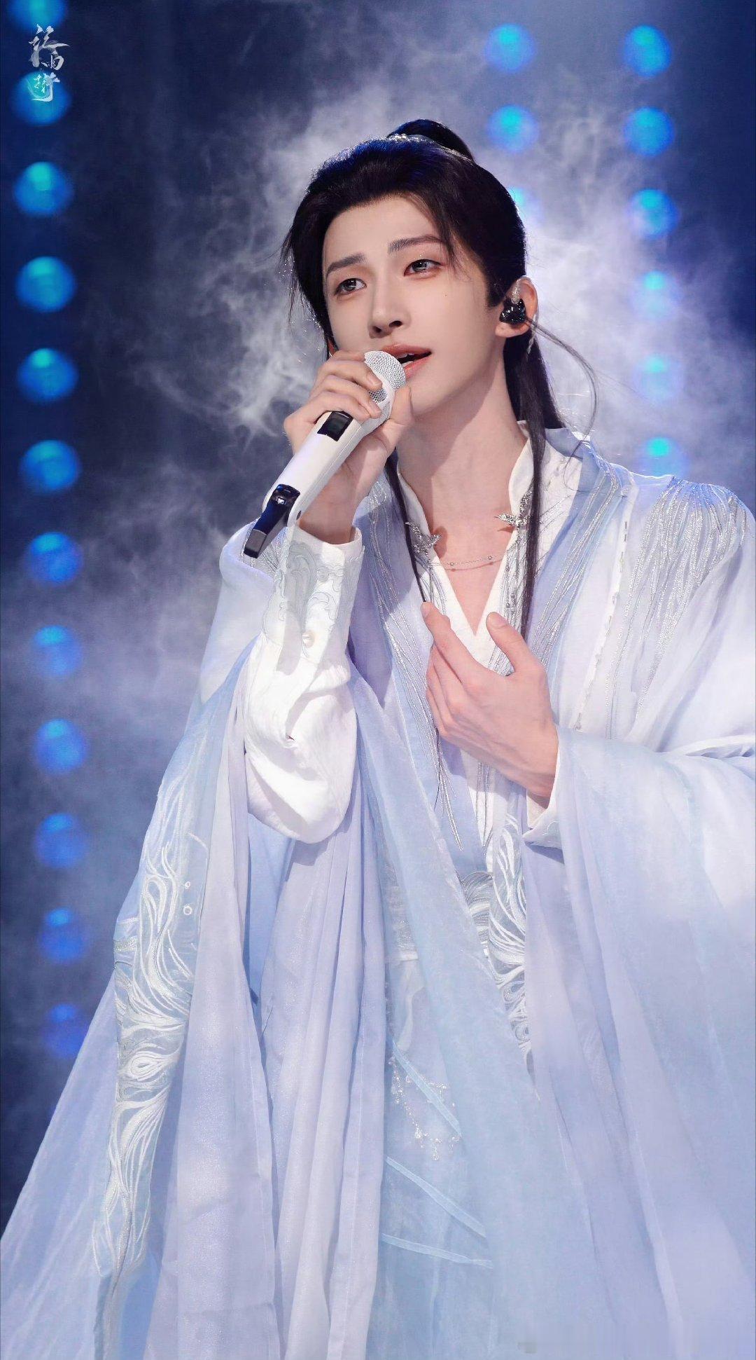白色古装加身,刘宇宛如穿越时空而来的雅士。简洁而不失大气的设计,搭配他的古典面容,尽显超凡脱俗之感。他于舞台之上,或浅笑,或舞动,皆是一幅绝美的国风画卷。刘宇白色古装亮相