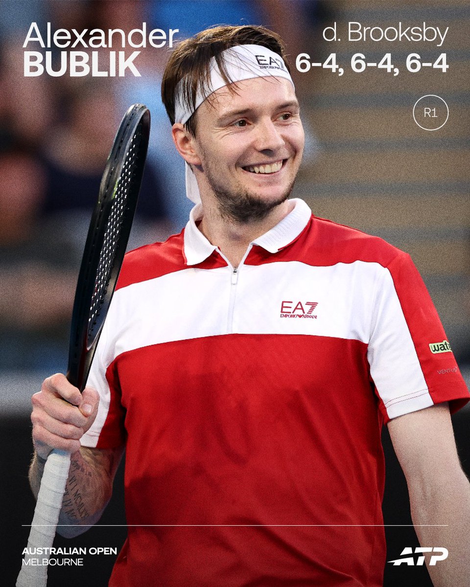 ATPTour(网球)报道。哈萨克斯坦选手亚历山大·布勃利克顺利晋级⛵,他在澳大利亚网球公开赛中对阵美国选手詹森·布鲁克斯比,直落两盘获胜。#AustralianOpen