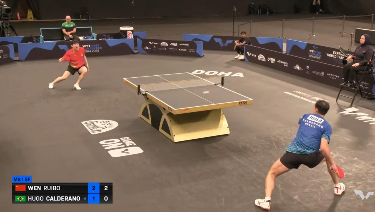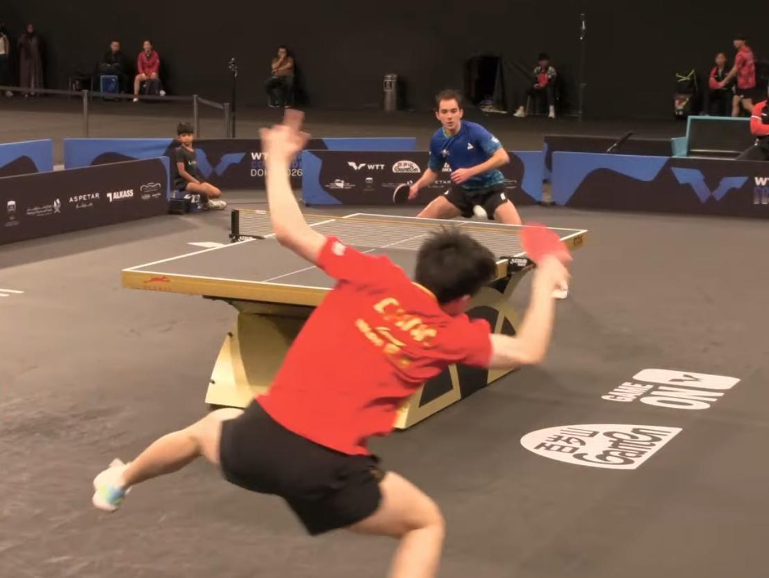 我去!温瑞博这跑动真是顶级的, 图一这个球, 温瑞博重心不稳了, 看到雨果用反手接球, 居然归位了。 这跑动能力, 可以和刘翔比了。 雨果和温瑞博打球, 把乒乓球当网球打。 温瑞博直接不打台内球, 发球和接发球,都是为远台对轰做准备。 这场球无论谁赢? 都无所谓, 太漂亮了。